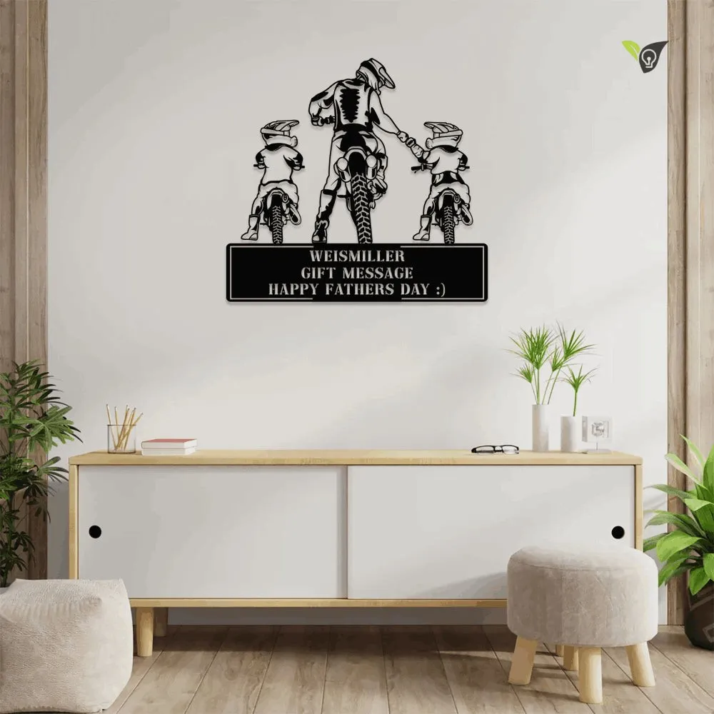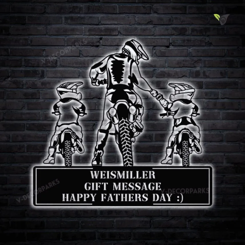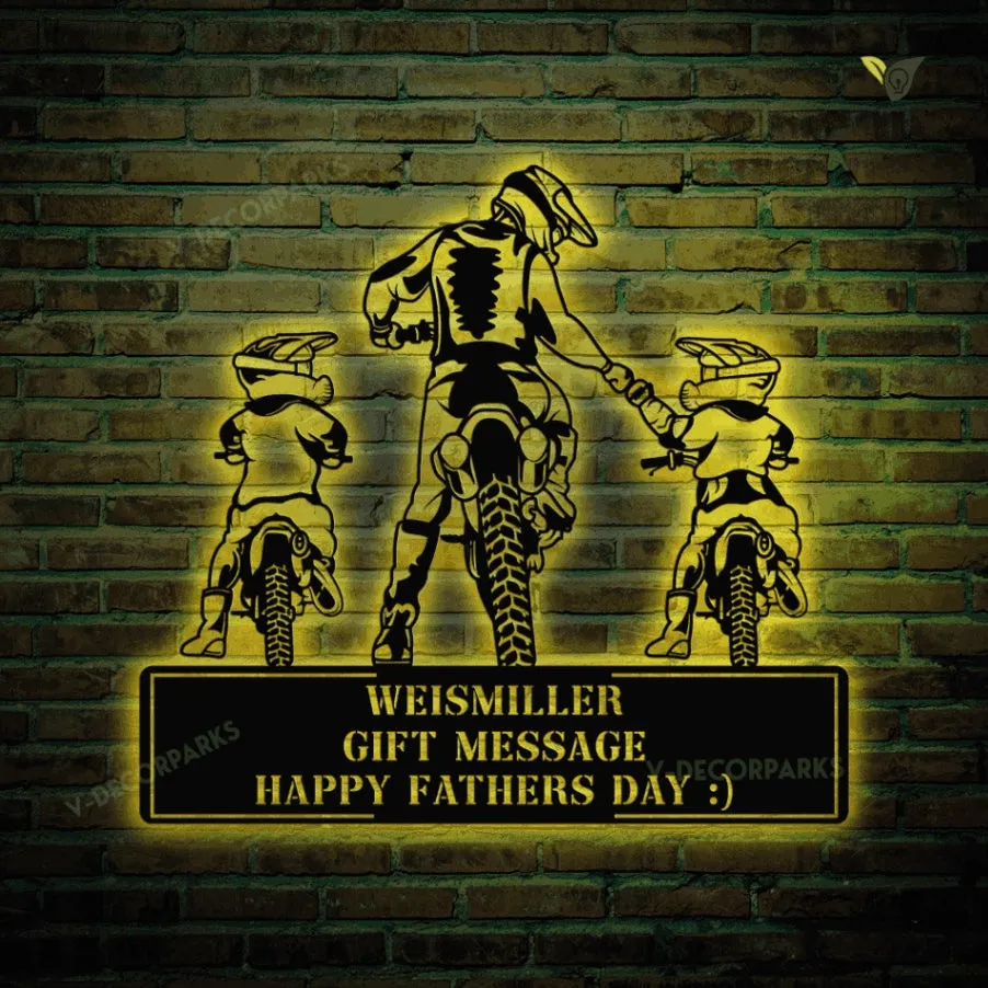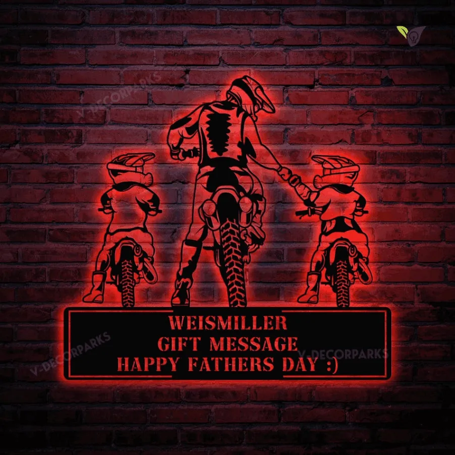 Motorcycle Dad And Son Daughter Metal Wall Art, Metal Sign With Colorful Led Light, Gift For Dad, Father’s Day Gift