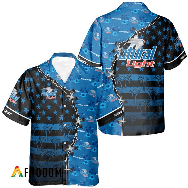 Natural Light Hawaiian Shirt For Men – American Flag Tropical Split 3d – Patriotic 4th Of July Outfit
