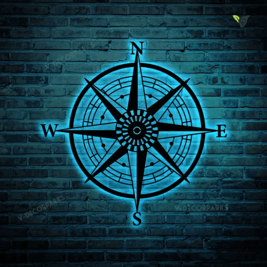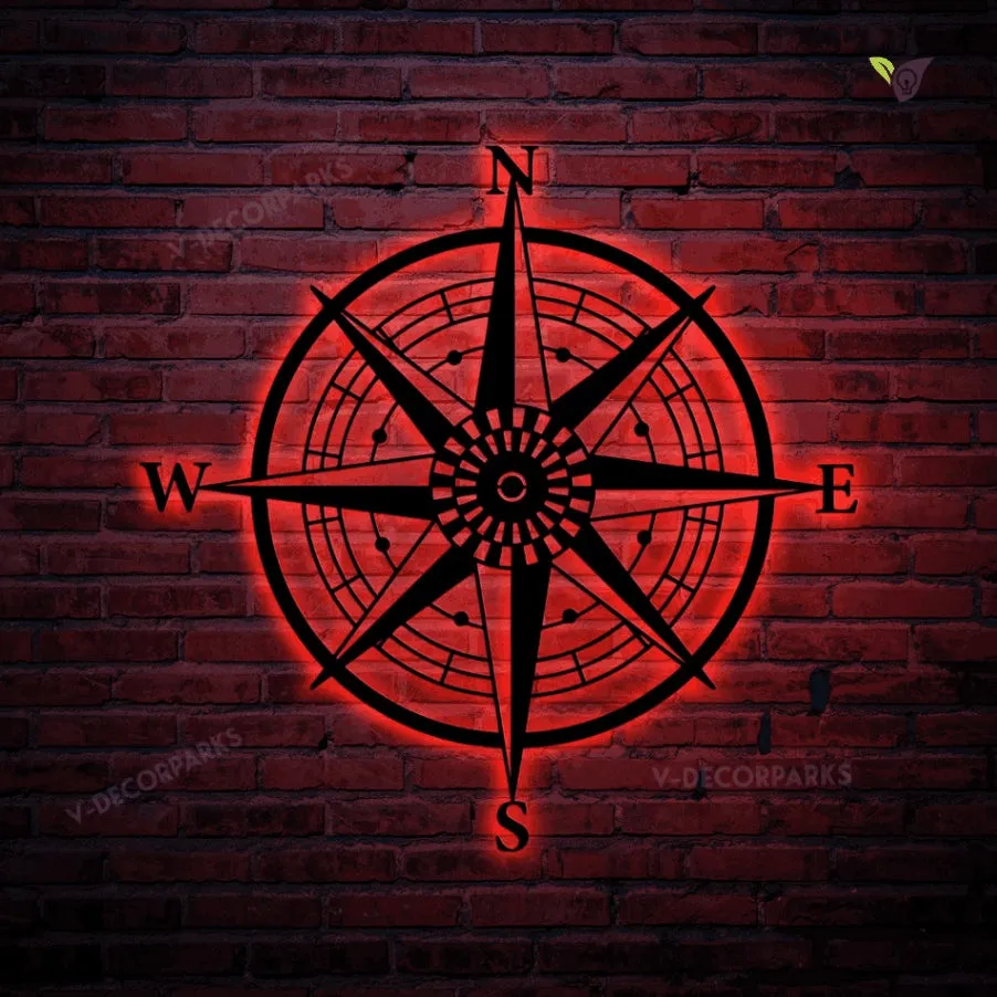 Nautical Compass Rose Metal Sign With Led Lights, Metal Gps Sign For House, Personalized Longitude Latitude Coordinates, Realtor Closing Gift Idea