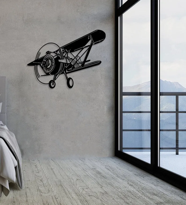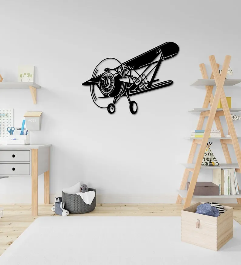 Old Fighter Jet Metal Wall Art, Fighter Jet Metal Home Decor, Old Plane Teen Room Decor, Black Metal Airplane Teen Room Decor And Wall Art