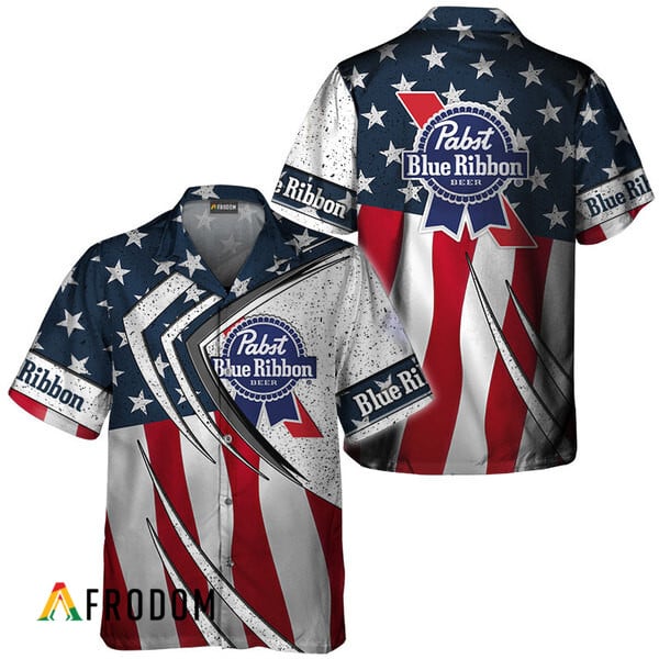Pabst Blue Ribbon Hawaiian Shirt For Men – American Flag 3d Design – Patriotic 4th Of July Gift For Dad