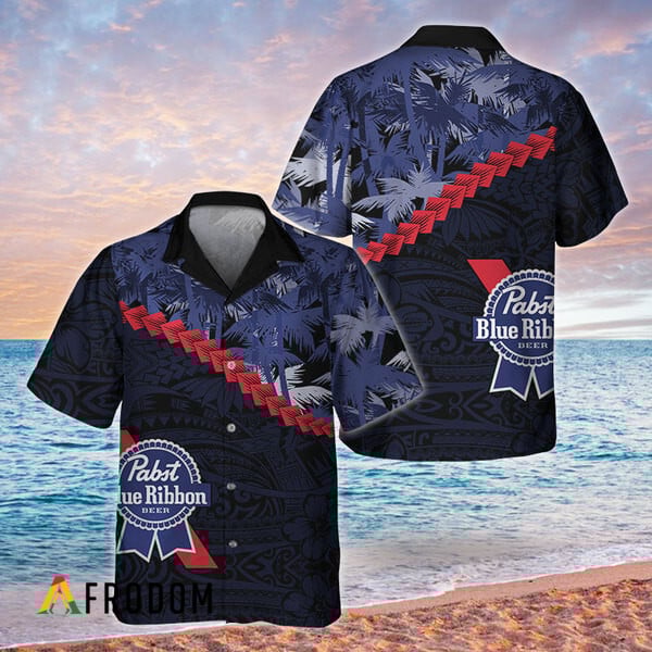 Pabst Blue Ribbon Hawaiian Shirt For Men – Blue Palm Tree Polynesian Blend – Tribal Style Golf Outfit