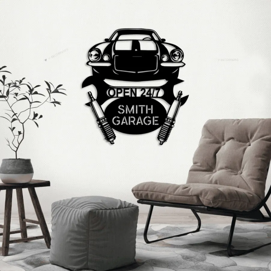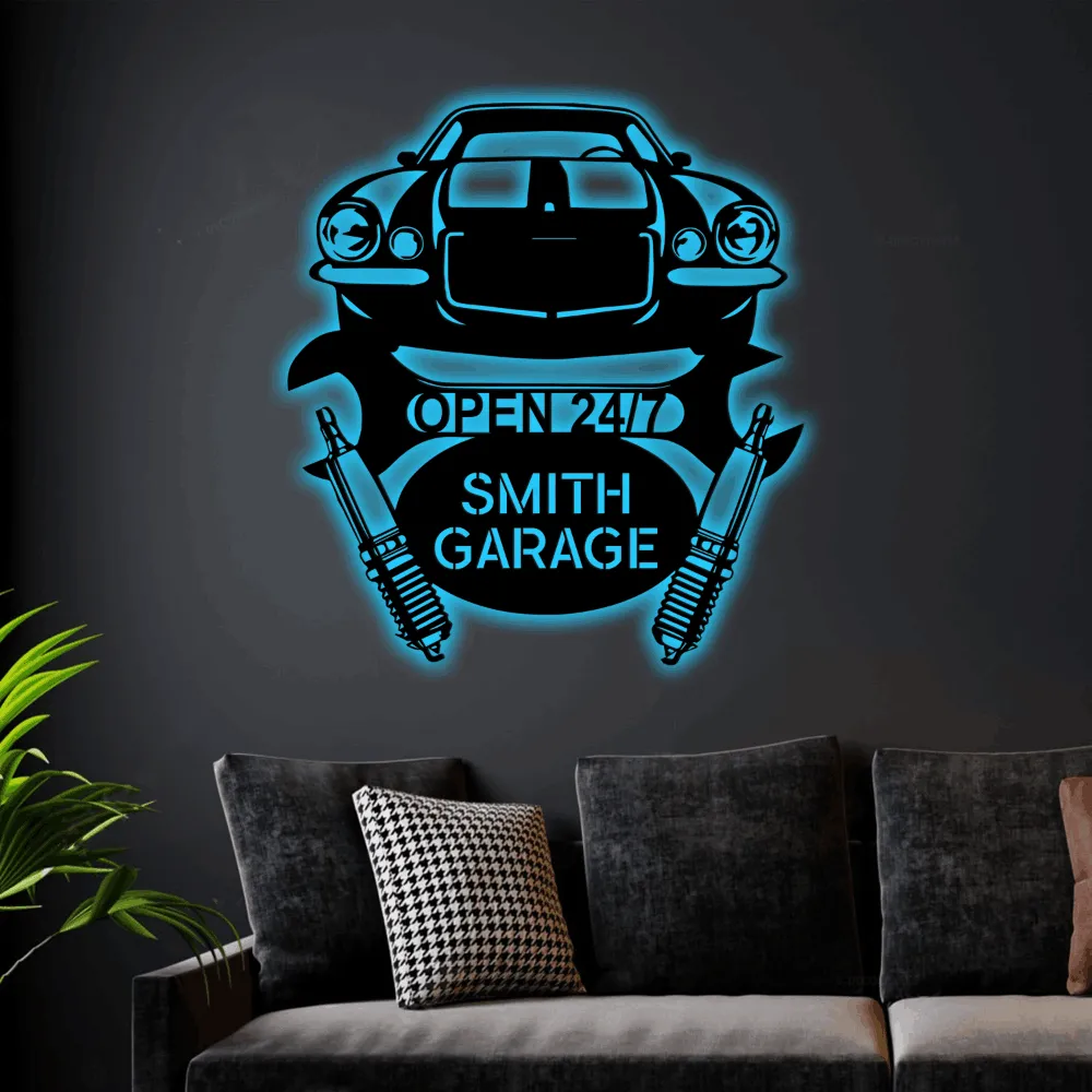 Personalize Led Lights Garage Sign Monogram Steel Sign, Gift For Dad Customized Car Camaro 1970 Monogram Wall Art Garage Decor