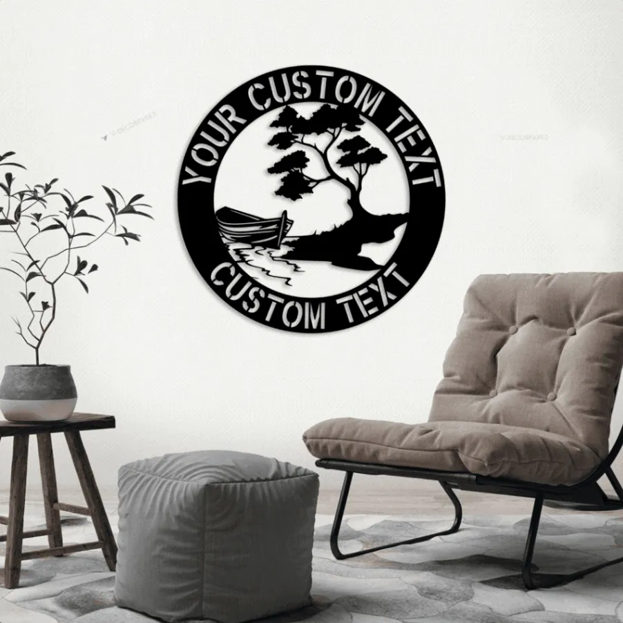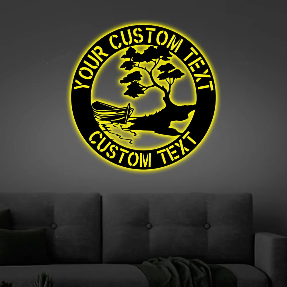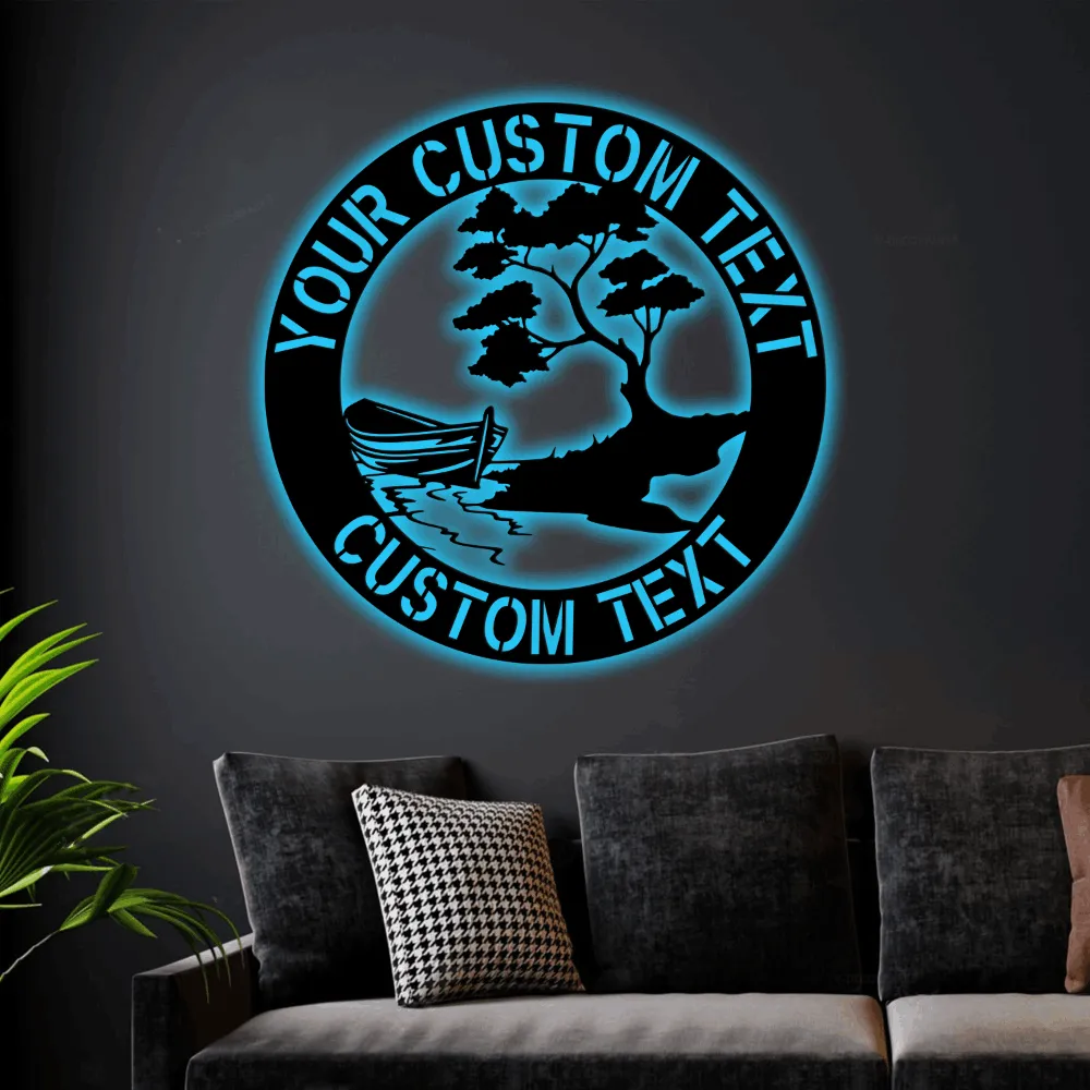 Personalize River Led Lights Sign Monogram Wall Art, Custom River Boat Monogram Steel Sign, Home Wall Art Decor Fathers Day Gift
