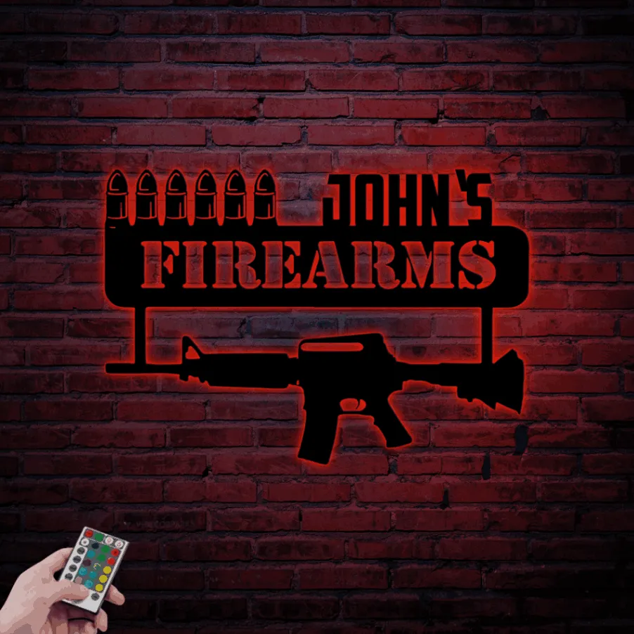 Personalized Ar-15 Gun Room Metal Sign With Led Lights, Veteran Gift, Ar-15 Gun Metal Sign, Gun Gift
