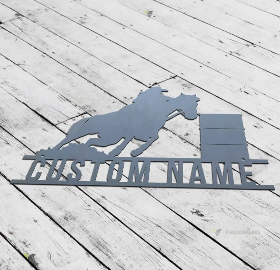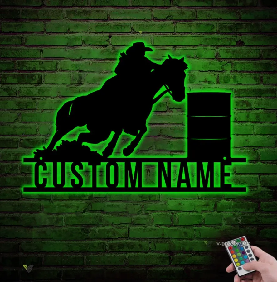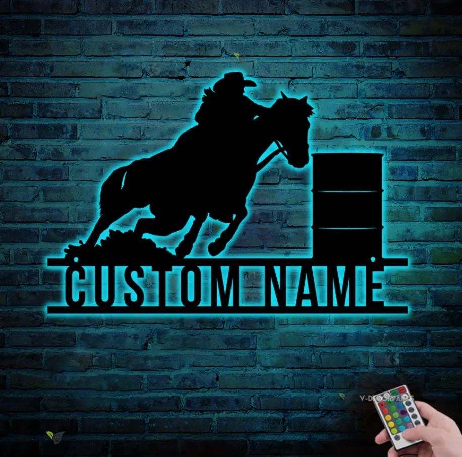 Personalized Barrel Racing Metal Wall Art Led Light, Custom Racer Name Art Decoration Hanging For Home Motorcycle Metal Home Decor Xmas Gift