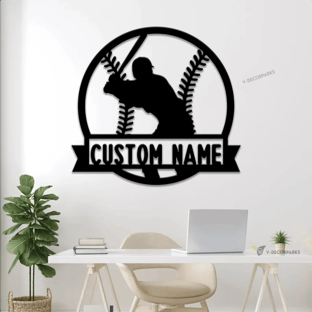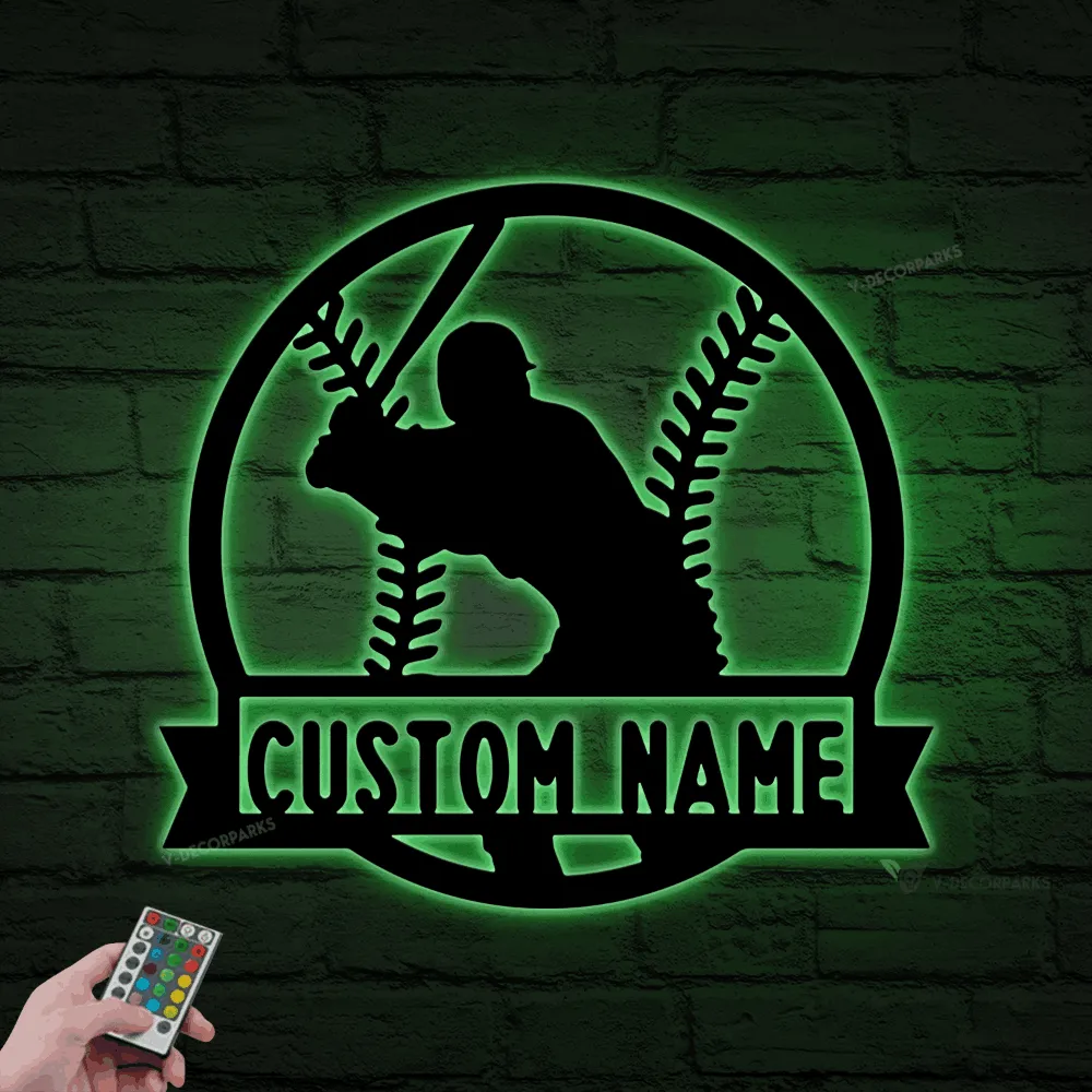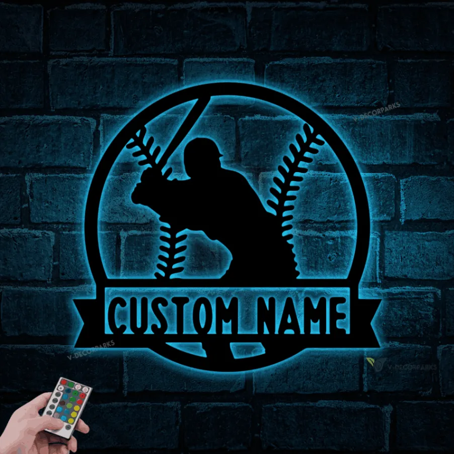 Personalized Baseball Custom Name Monogram Metal Sign With Led Lights, Baseball Bats, Nursery Decor, Metal Name Sign