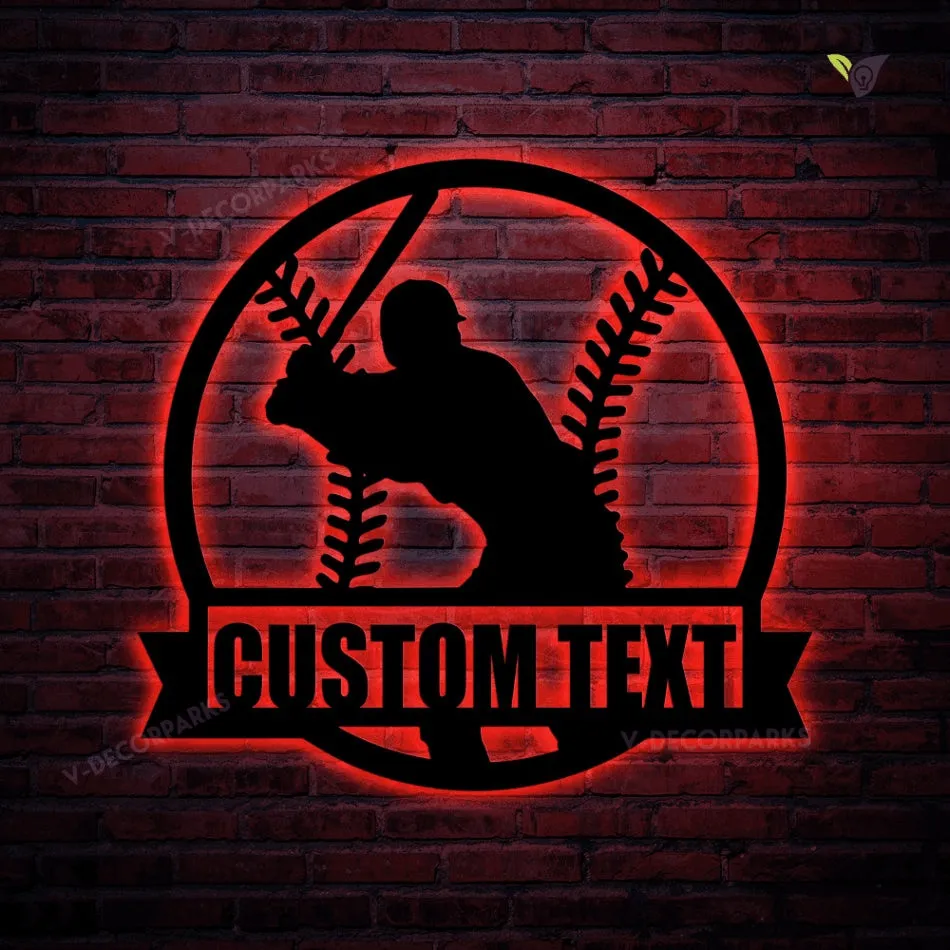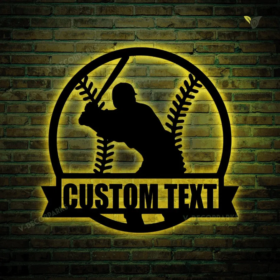 Personalized Baseball Metal Wall Art Led Lights, Customized Baseball Metal Art, Baseball Extra Large Wall Art, Gift For Husband