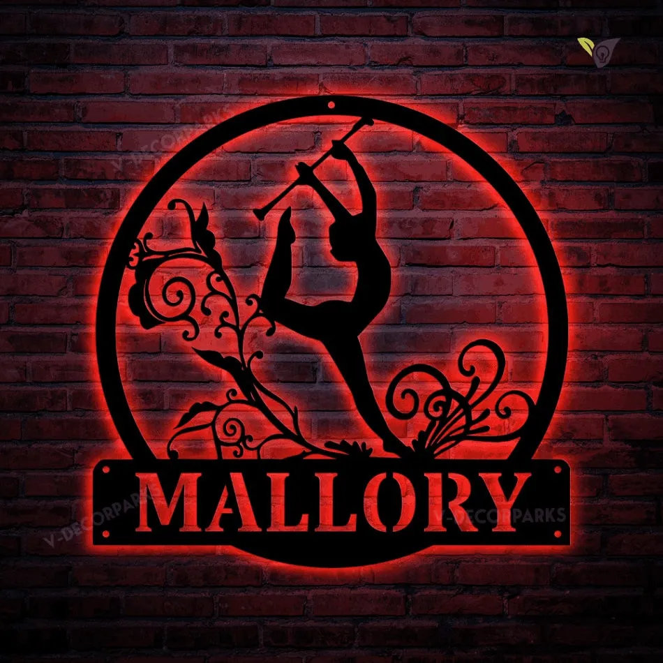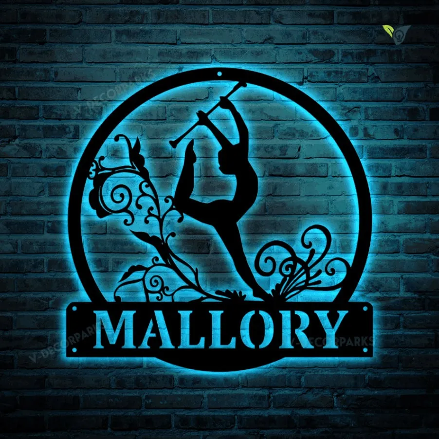 Personalized Baton Twirling Monogram Metal Sign With Led Lights Art, Custom Baton Twirling Metal Sign