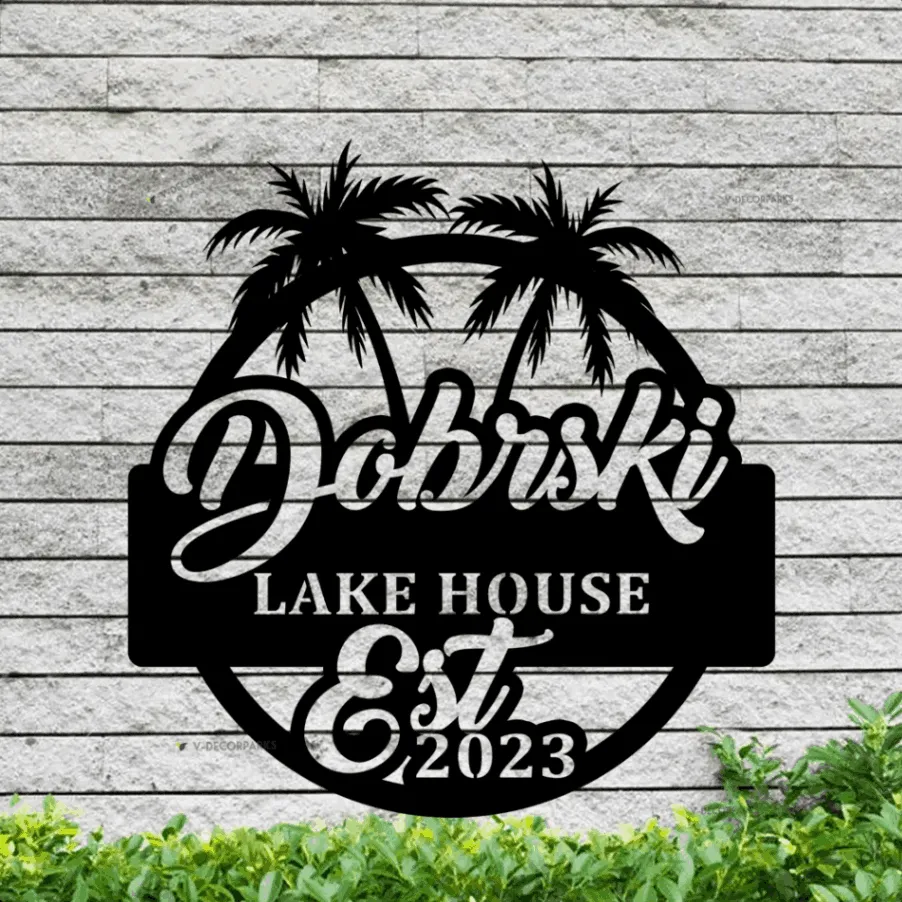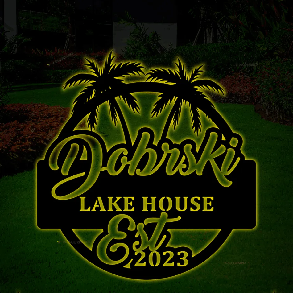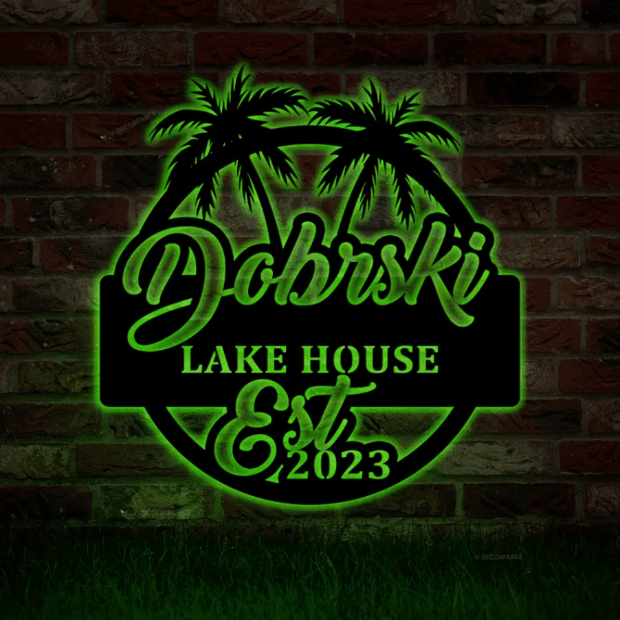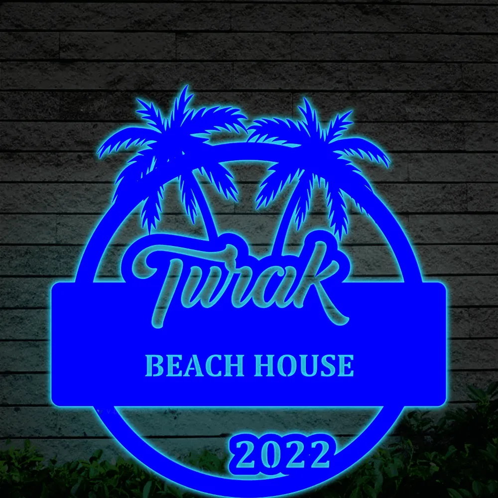 Personalized Beach House Metal Sign With Led Lights, Custom Outdoor House, Housewarming Wall Decor, Wedding Art Gift