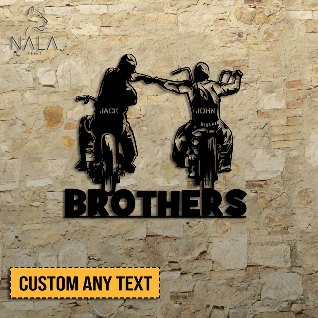 Personalized Brothers Bicycle Metal Sign, Custom Name Motor Friends Design Wall Art, Wall Hanging Decor Gift For Friends