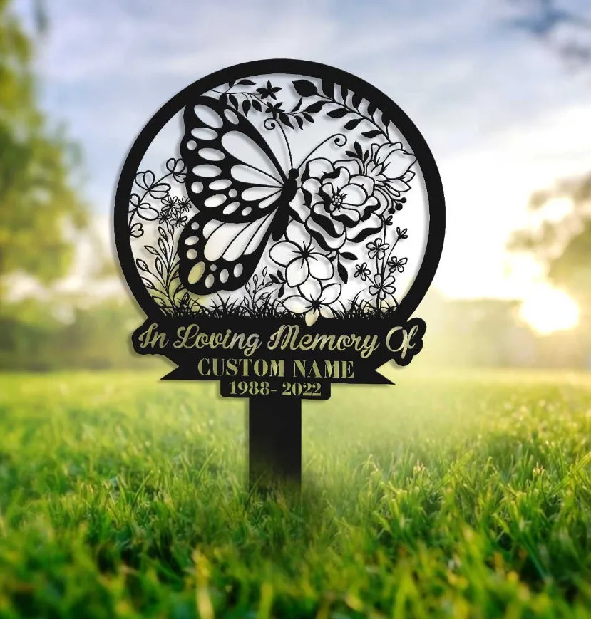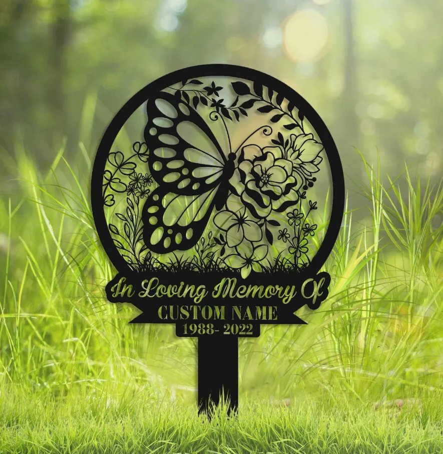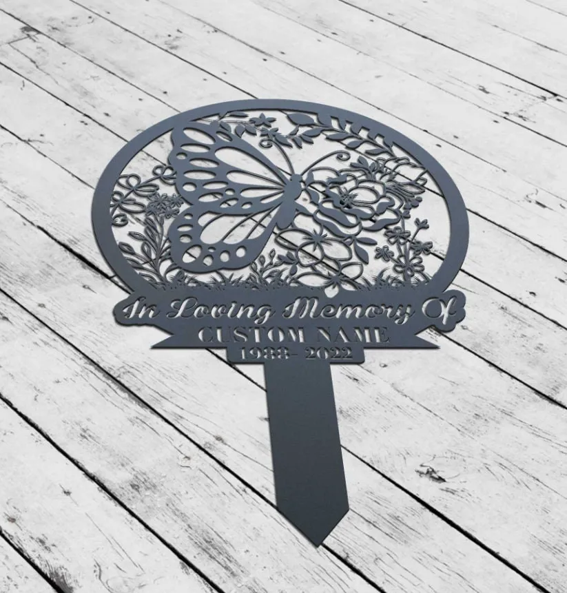 Personalized Butterflies Memorial Stake, Metal Stake, Sympathy Sign, Grave Marker, Garden Decor, In Loving Memory, Butterflies And Flower