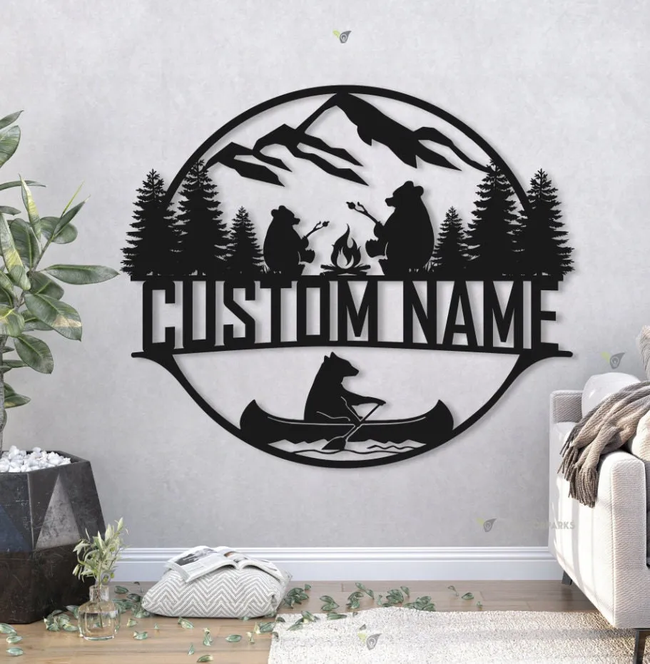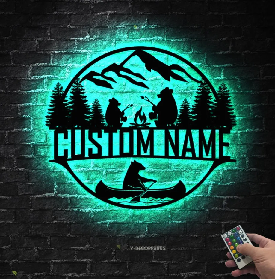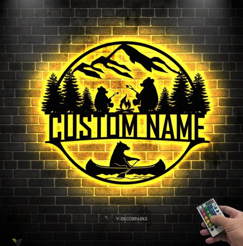 Personalized Camper Name Sign Led Light, Custom Camp Sign, Camping Bears Metal Sign, Camp Life Camping Sign, Bear Cabin Sign, Camp Gift