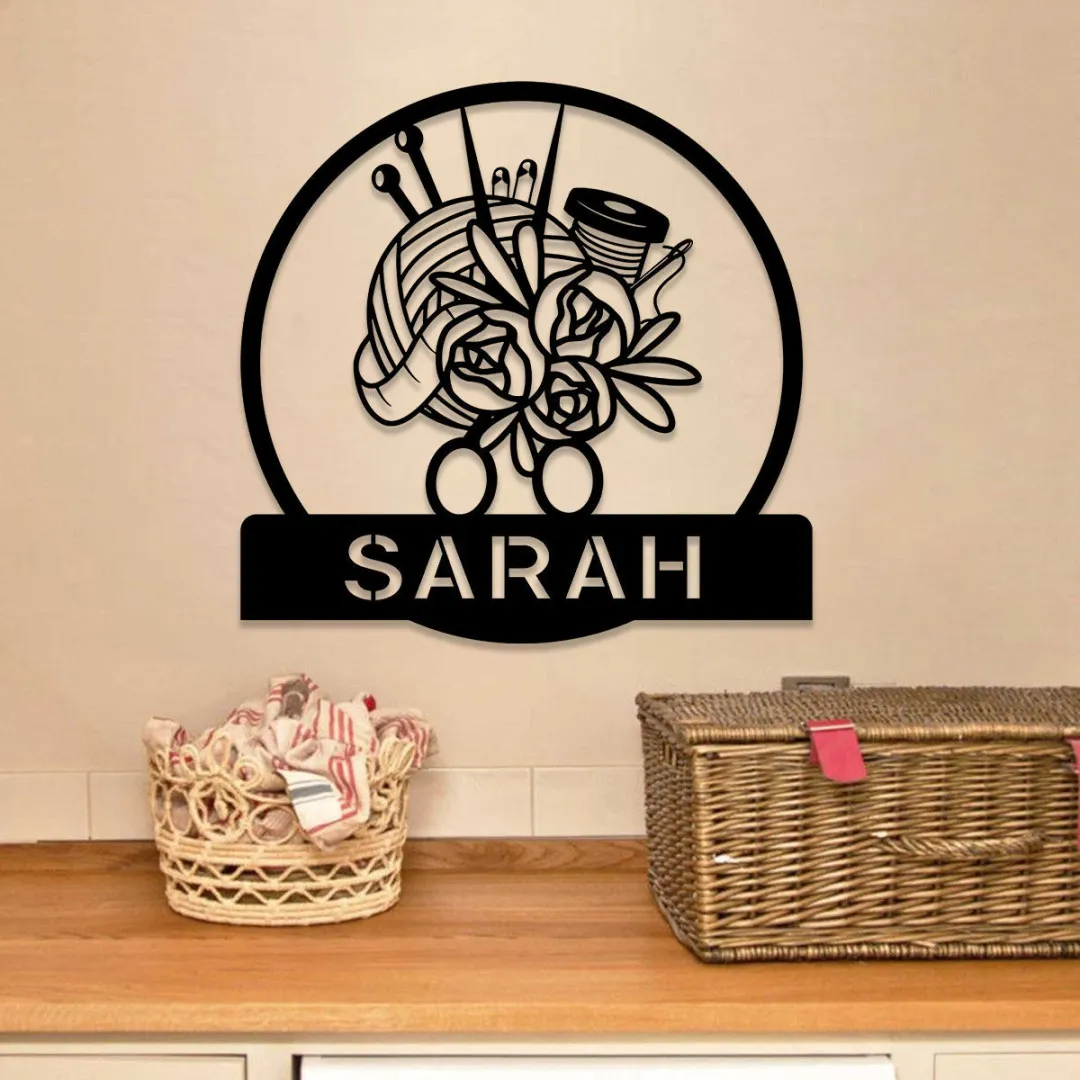 Personalized Crochet Knitting Metal Sign, Custom Yarn Metal Art