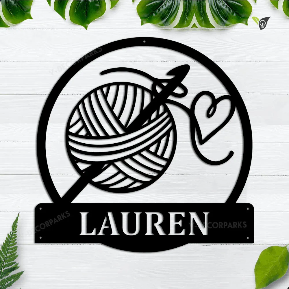 Personalized Crochet Metal Sign Art, Custom Crochet Monogram Metal Sign, Hobbie Gift, Crochet Gift
