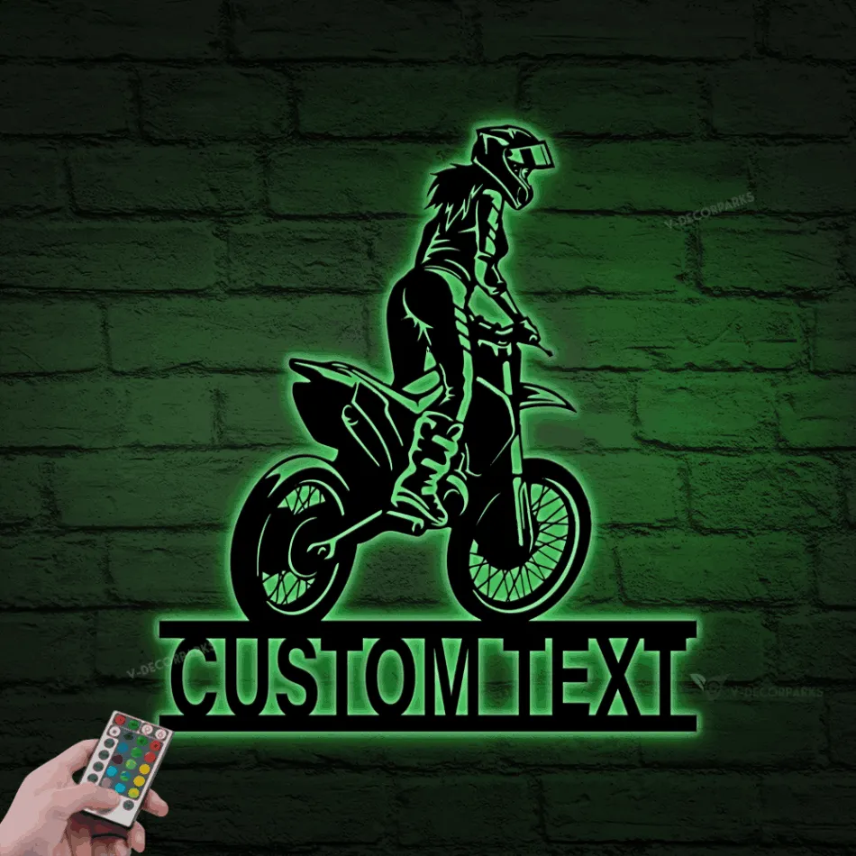 Personalized Dirt Bike Metal Sign With Led Lights, Dirt Bike Lovers, Dirk Bike Sign, Unique Decor, Gift For Her, Girl Biker Gift