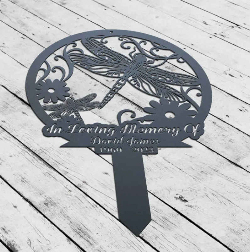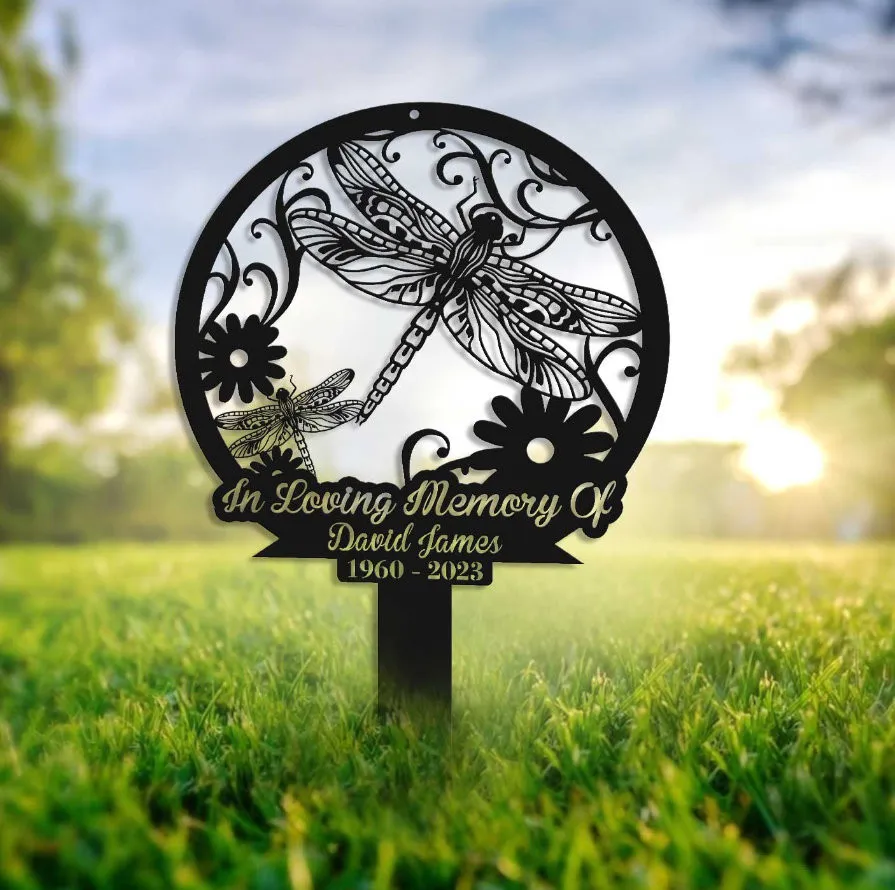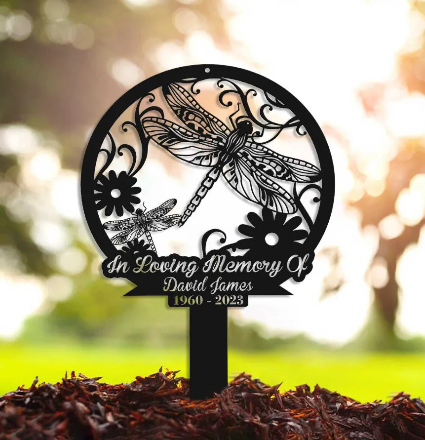 Personalized Dragonfly Memorial Stake, Metal Stake, Garden Decor, In Loving Memory, Sympathy Sign, Grave Marker, Dragonfly And Flower Sign