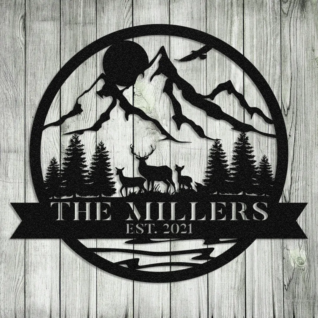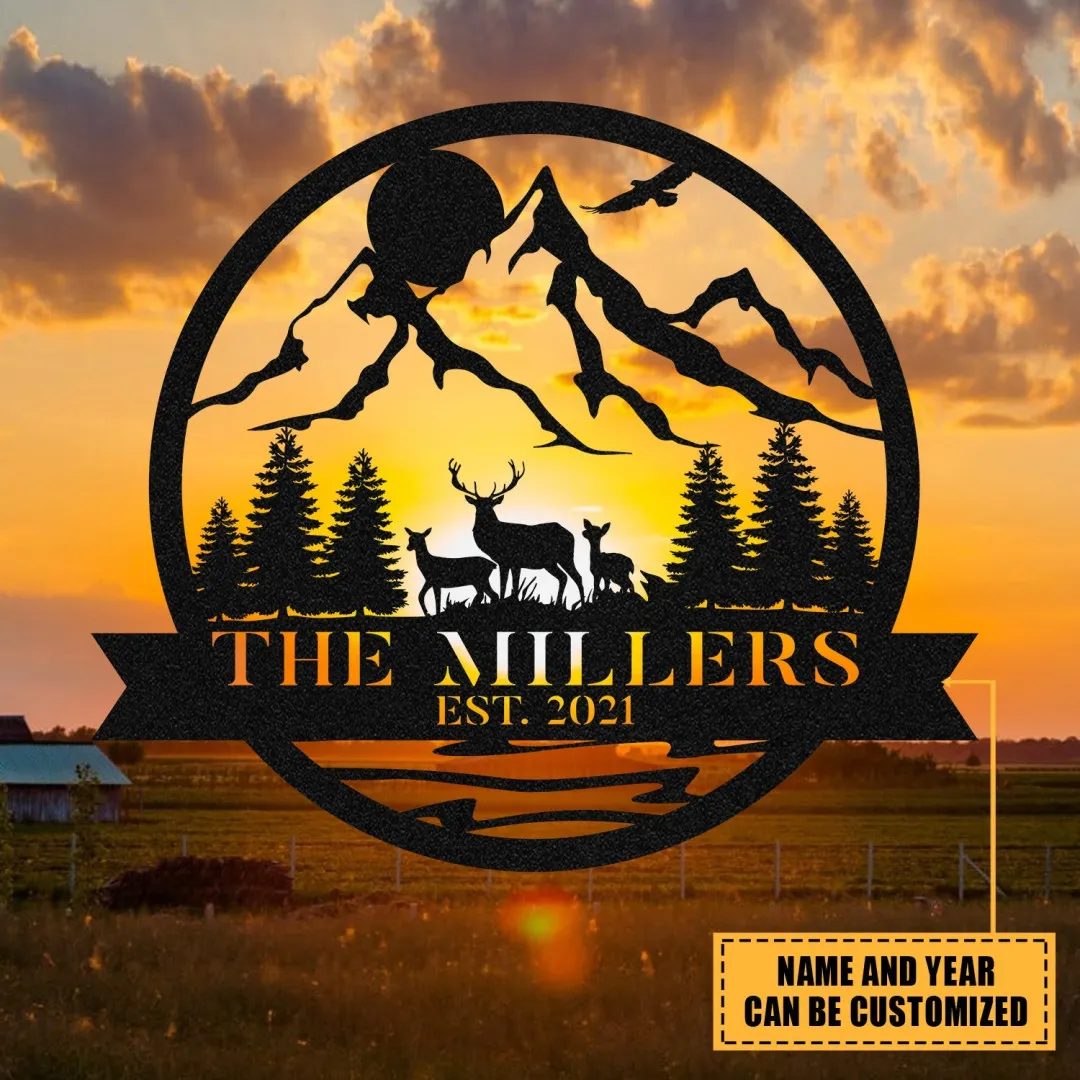 Personalized Family Name Date Deer Doe Fawn Hunting Hunter Metal Sign Monogram, Custom Outdoor Cabin, Wall Decor, Art Gift