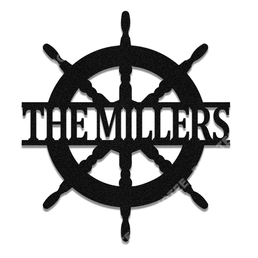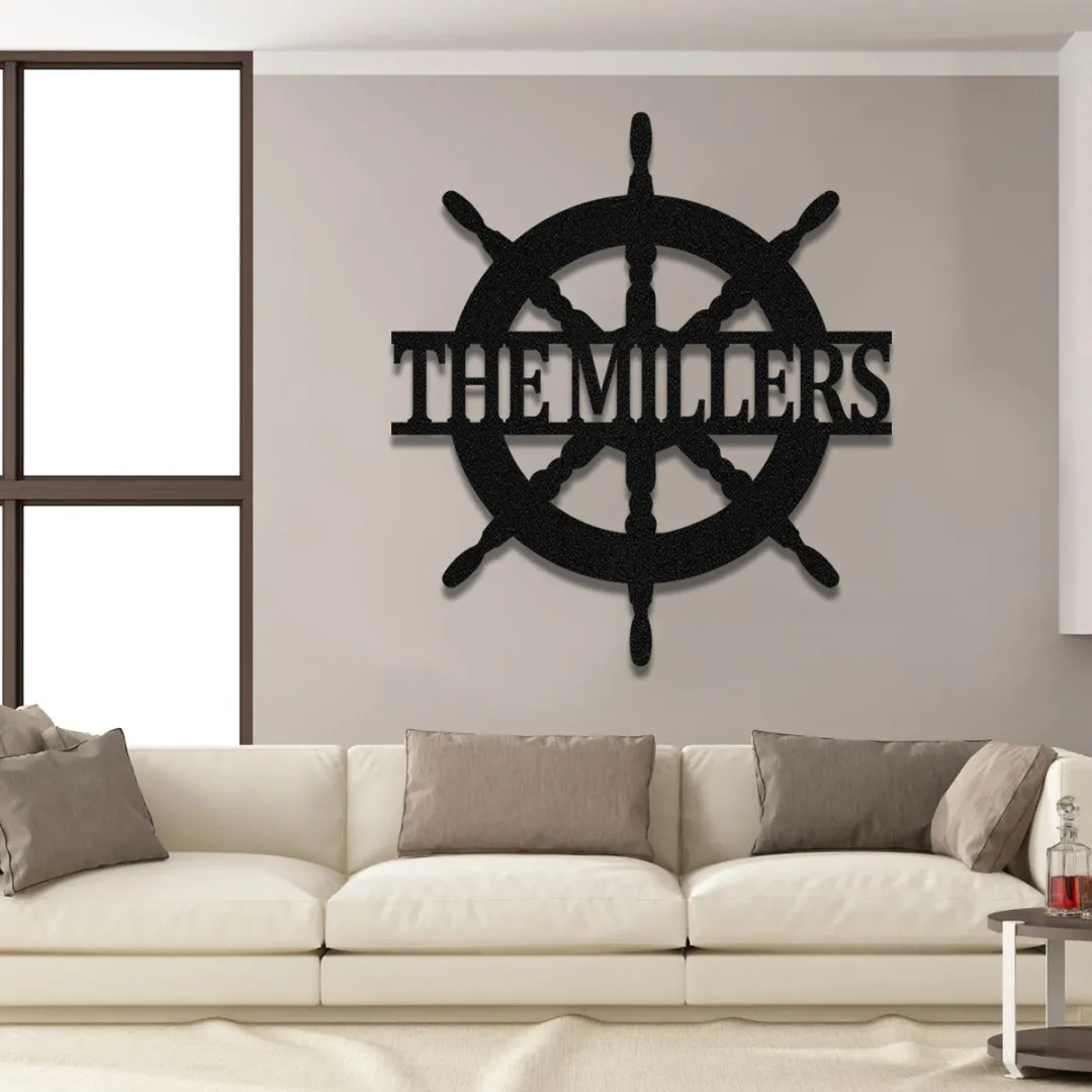 Personalized Name Helm Boat Ship Lake House Metal Sign, Pontoon Ship Wall Decor