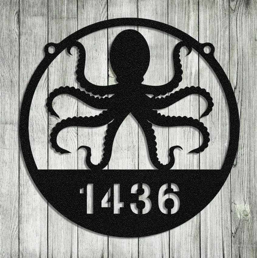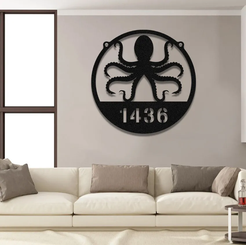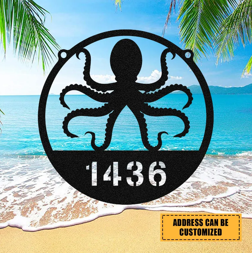 Personalized Family Name Octopus Beach House Metal Sign Monogram, Custom Outdoor House, Lake, Housewarming Wall Decor, Wedding Art Gift