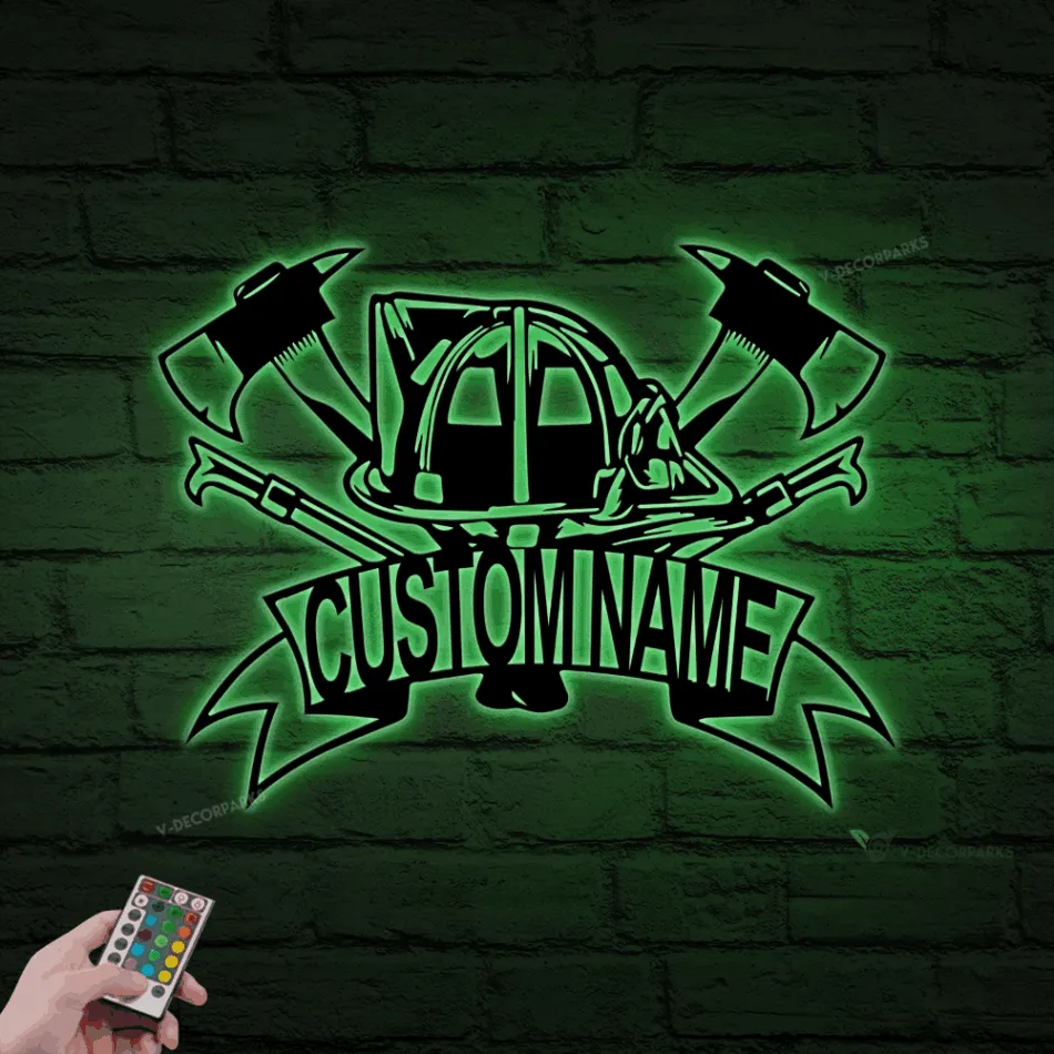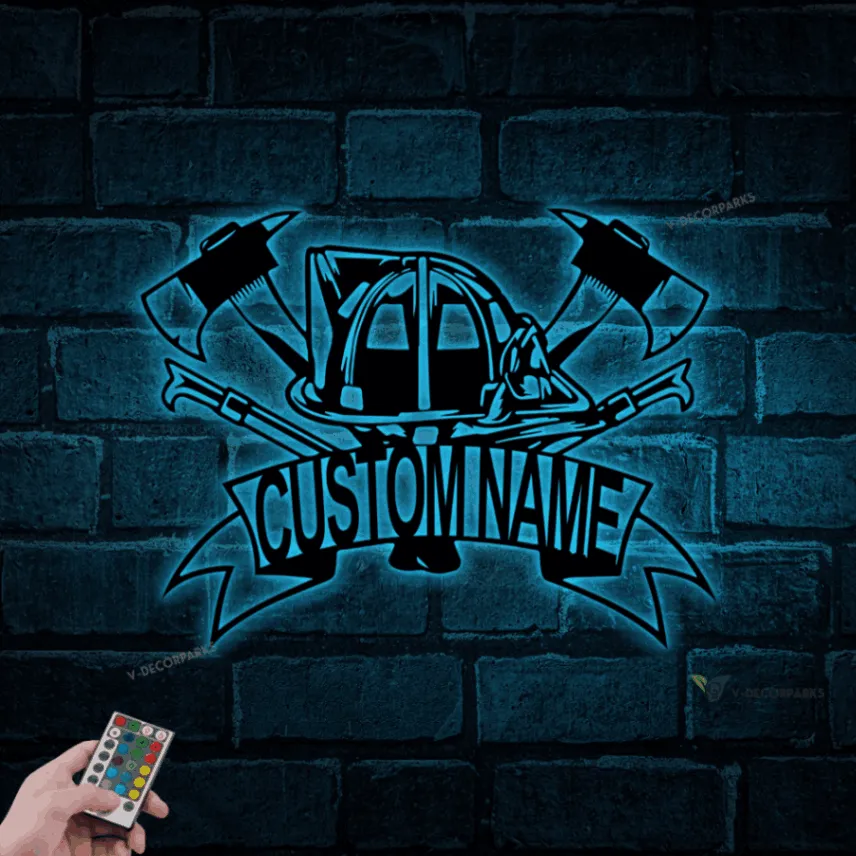 Personalized Firefighter Metal Sign With Led Lights, Fd Fireman Name Sign, Fireman Gift, Gift For Dad, Firefighter Gift For Him