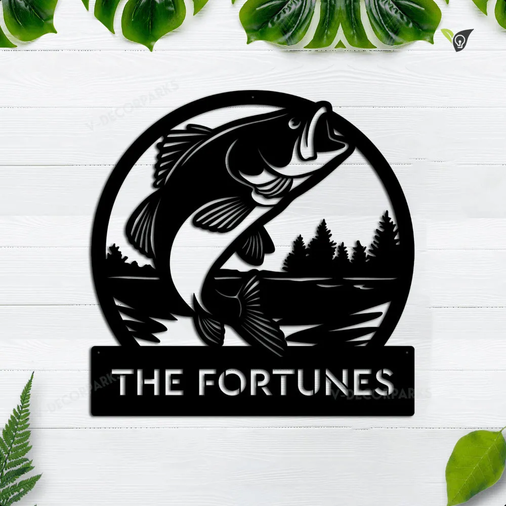 Personalized Fish Metal Name Sign, Bass Fishing Metal Monogram, Fishing Gifts For Men, Metal Fish Sign, Custom Fishing Metal Sign, Fisherman Gift