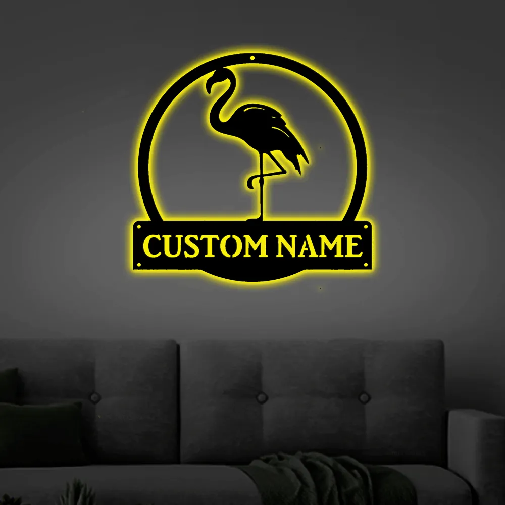 Personalized Flamingo Animal Monogram Metal Sign Art With Led Lights, Custom Flamingo Metal Sign, Flamingo Sign Decoration For Living Room