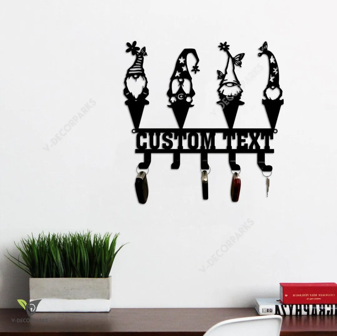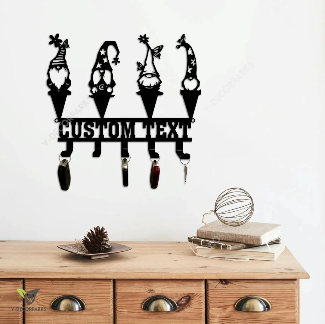 Personalized Gnomes Keychain Holder Metal Wall Art, Metal Key Holder, Best Gift Idea, Custom Text Metal Sign, Gnomes Family Signs