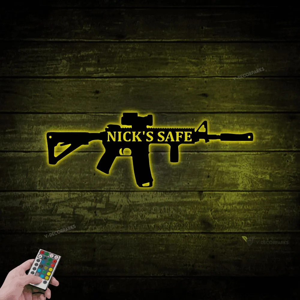 Personalized Gun Metal Sign With Led Lights- Gun Metal Sign – Gun Owner Gift – Armory Decor – 2nd Amendment – Army Gift – Veteran Gift – Ar5