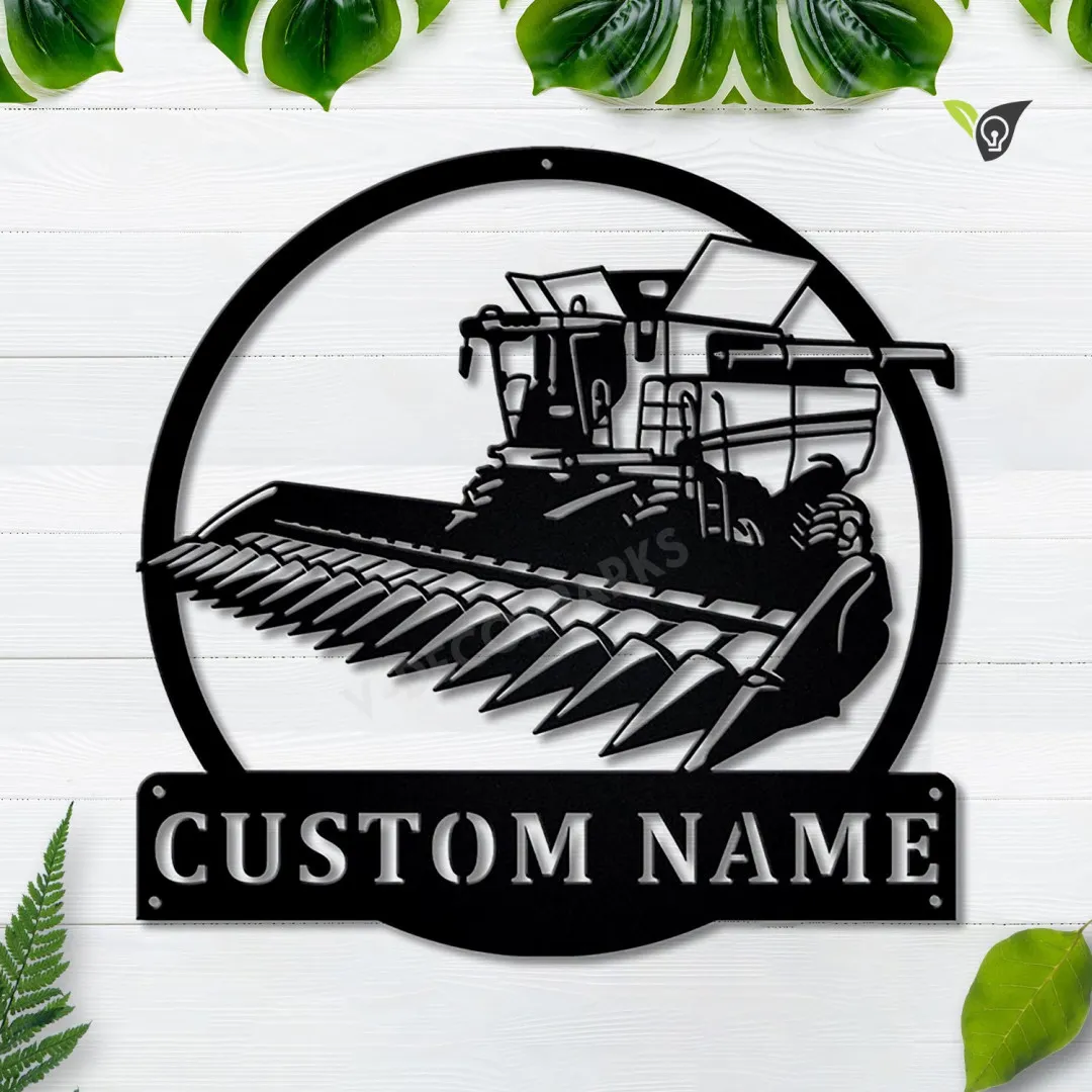 Personalized Harvester Farm Tractor Metal Sign Art, Custom Harvester Farm Tractor Monogram Metal Sign, Job Gift, Decor Decoration