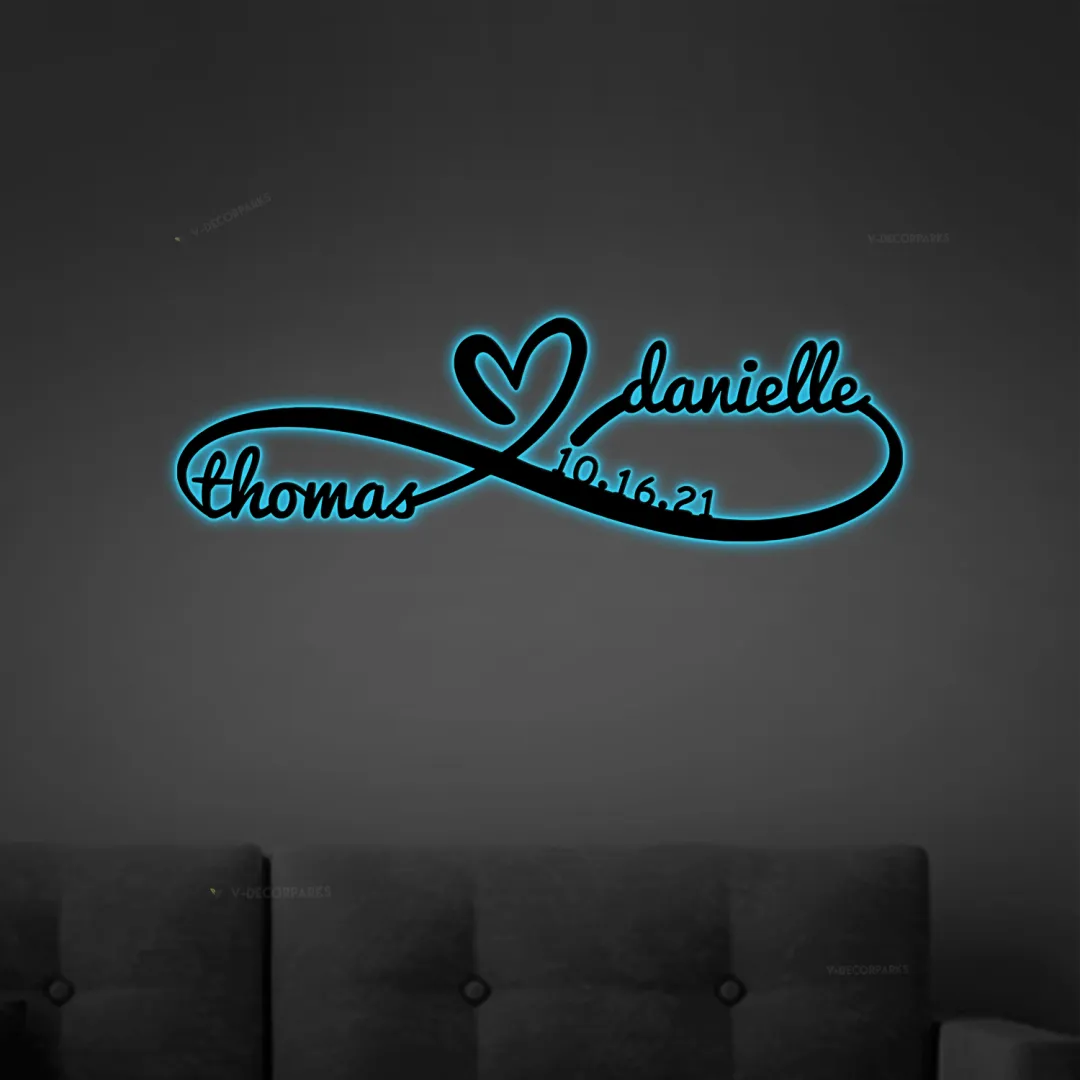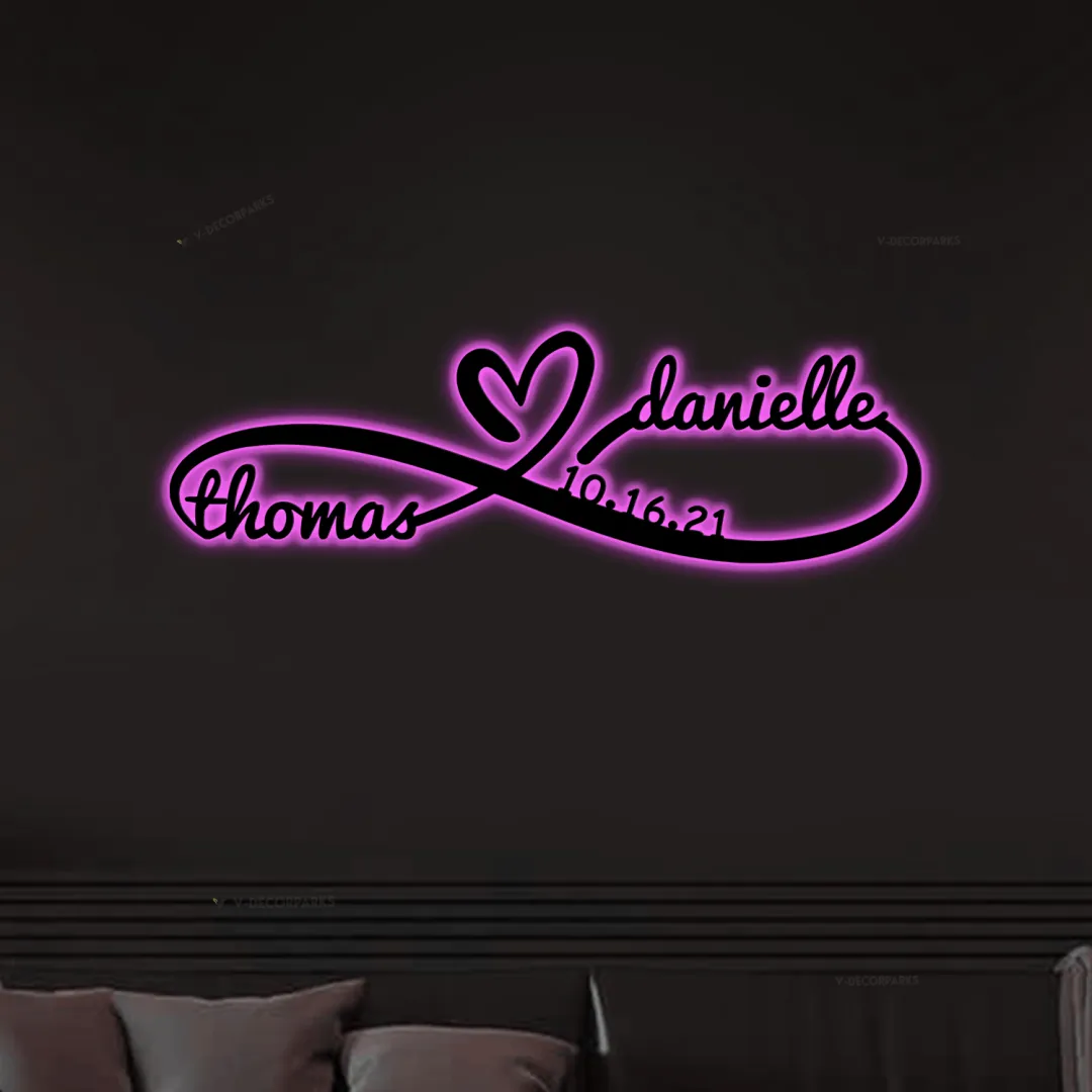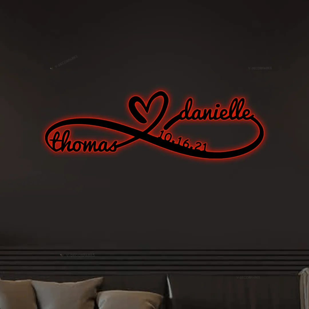 Personalized Infinity Metal Sign With Led Lights, Metal Established Infinity Sign, Housewarming Gift, Door Hanger, Wedding Gift