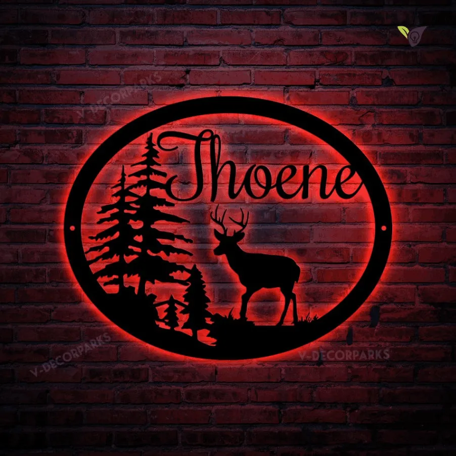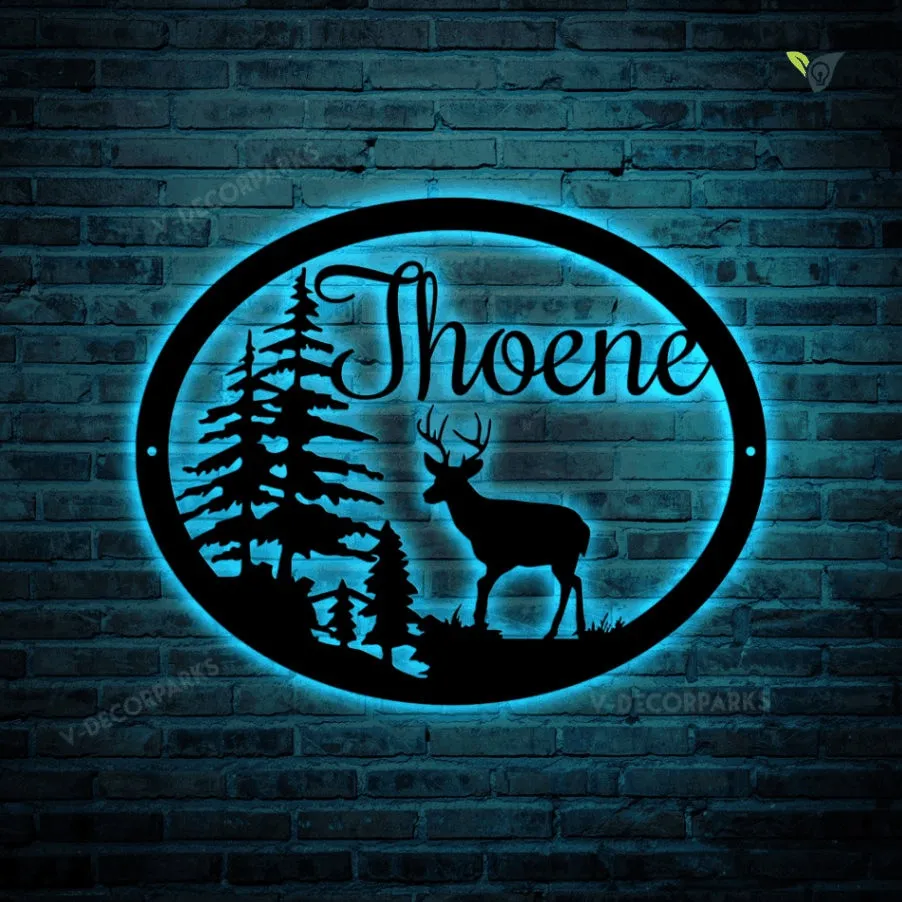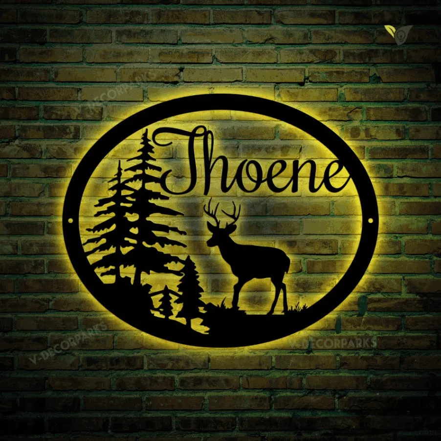 Personalized Last Name Deer Metal Sign With Led Lights – Deer Hunter Gift – 24 Inch – Large Metal Sign With Led Lights
