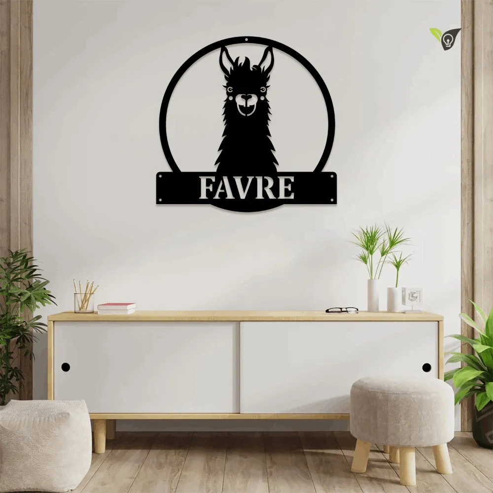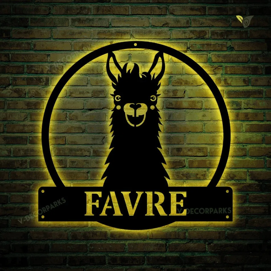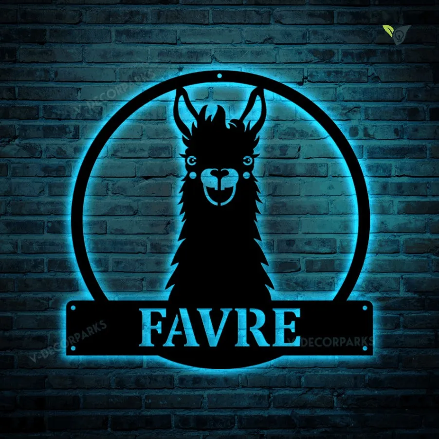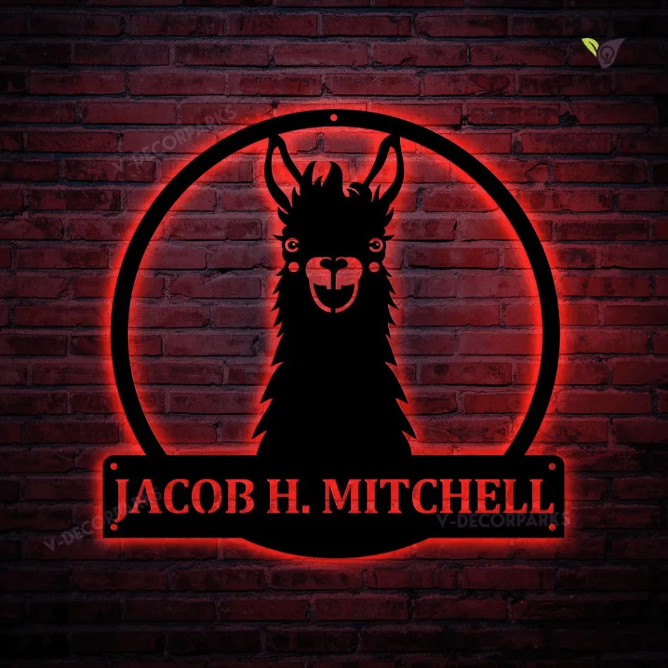 Personalized Llama Animal Monogram Metal Sign With Led Lights Art , Custom Llama Metal Sign With Led Lights, Llama Animal Lover Sign