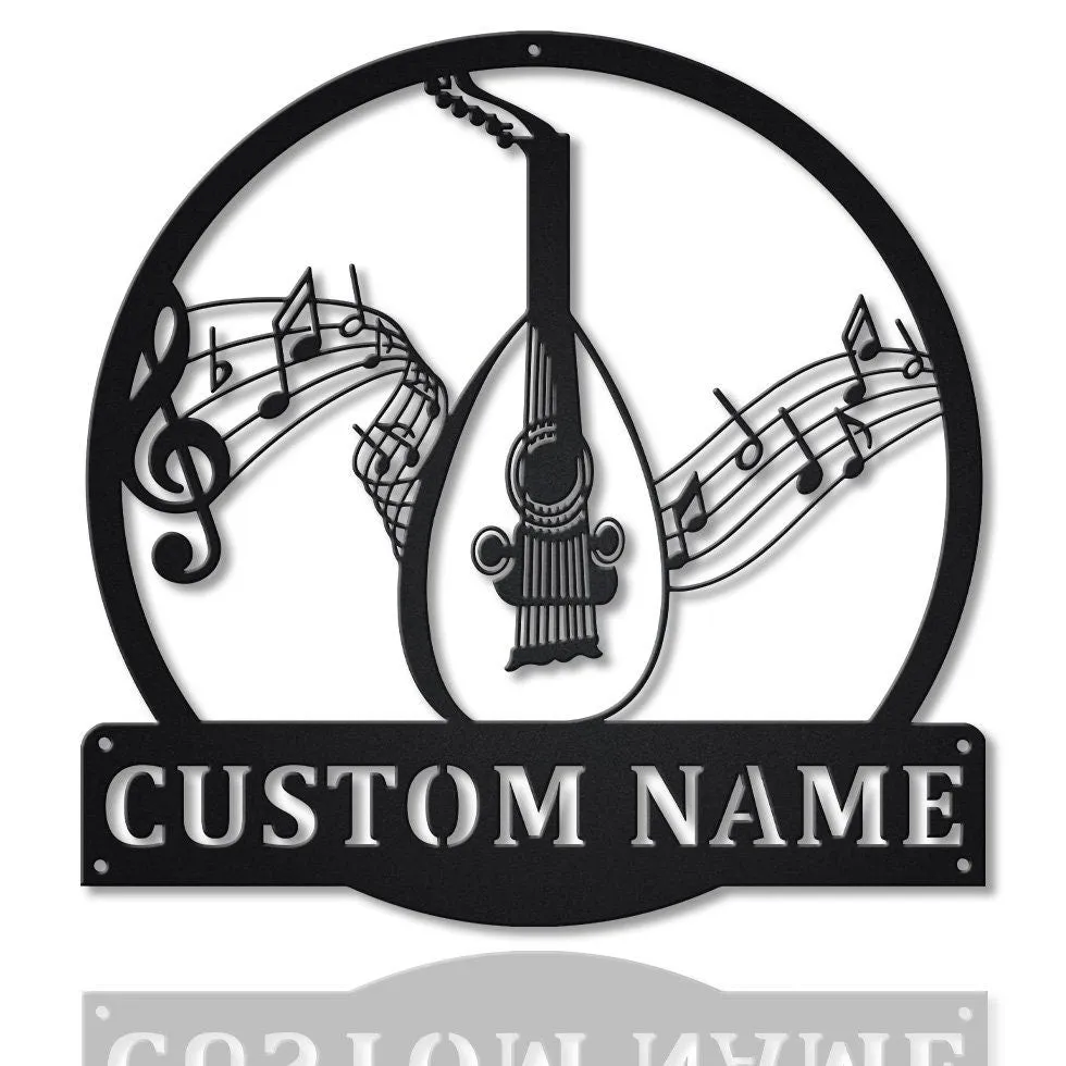 Personalized Lute Monogram Metal Sign Art, Custom Lute Monogram Metal Sign, Musical Instrument Gift, Music Gift
