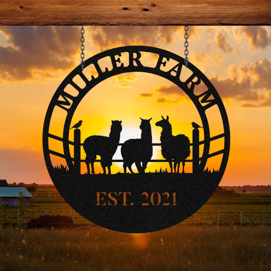 Personalized Metal Farm Sign Alpaca Monogram