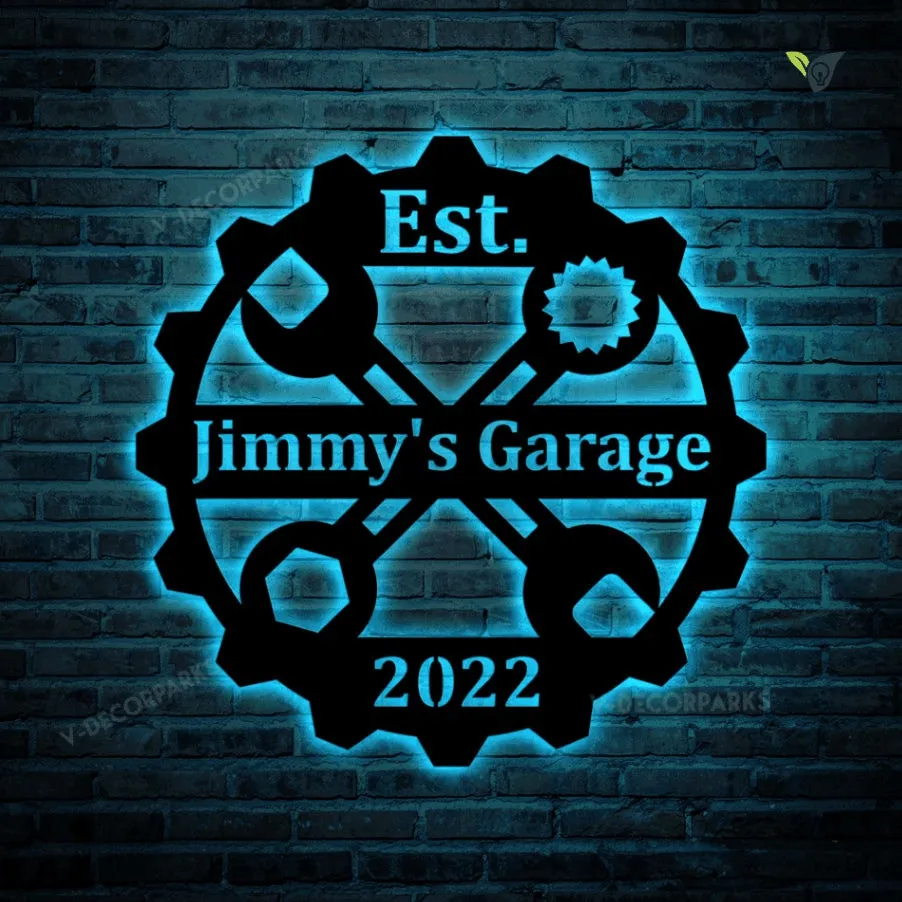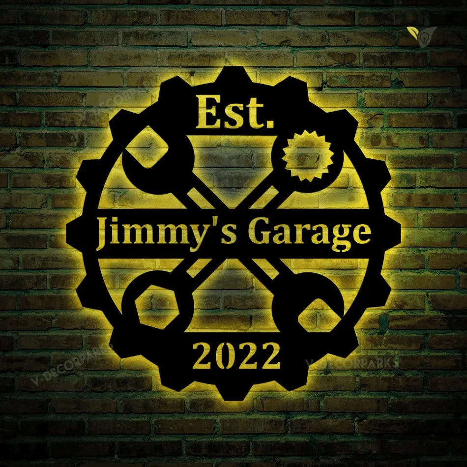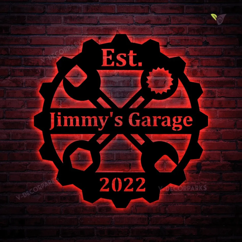 Personalized Metal Garage Metal Sign With Led Lights, Cut Metal Sign With Led Lights, Metal Wall Art, Metal House Sign
