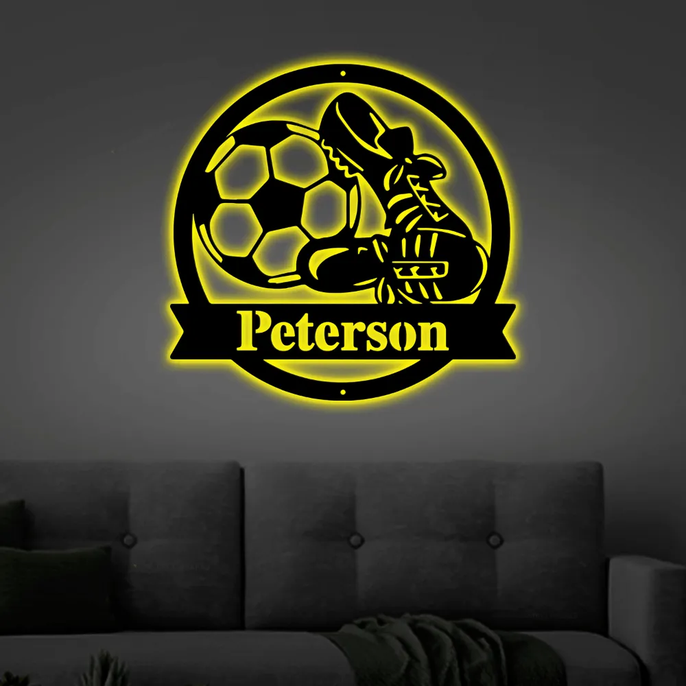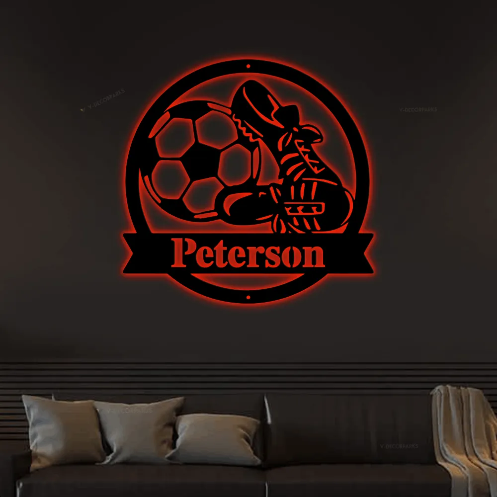 Personalized Metal Soccer Sign With Led Lights, Soccer Gift For Boys, Personalized Soccer For Boys Room, Metal Soccer Sign, Soccer Boys Room Sign