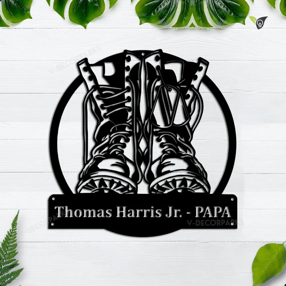 Personalized Military Boots Fallen Soldier Metal Sign Art, Custom Fallen Soldier Monogram Metal Sign, Army Gift, Decor Decoration