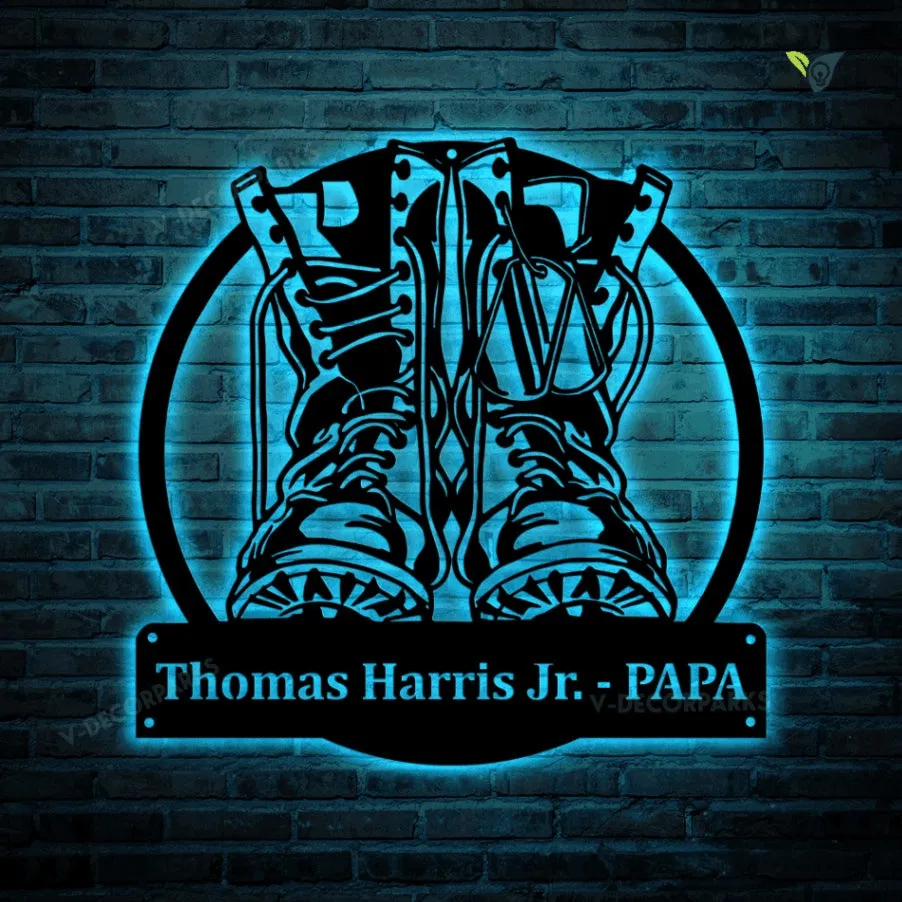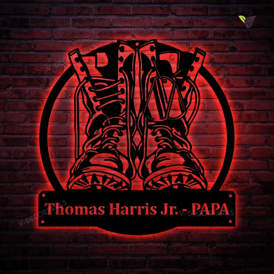 Personalized Military Boots Fallen Soldier Metal Sign With Led Lights, Custom Fallen Soldier Monogram Metal Art, Army Gift, Decor Decoration