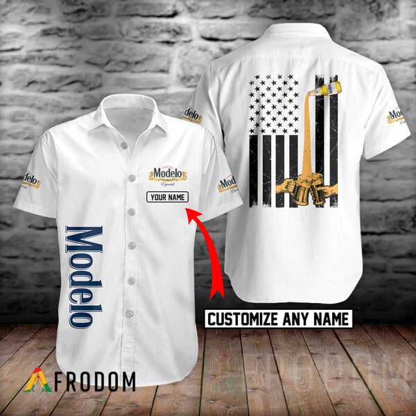 Personalized Modelo Especial Beer Hawaiian Shirt For Men – Us Flag White – Summer Beach Vacation Gift