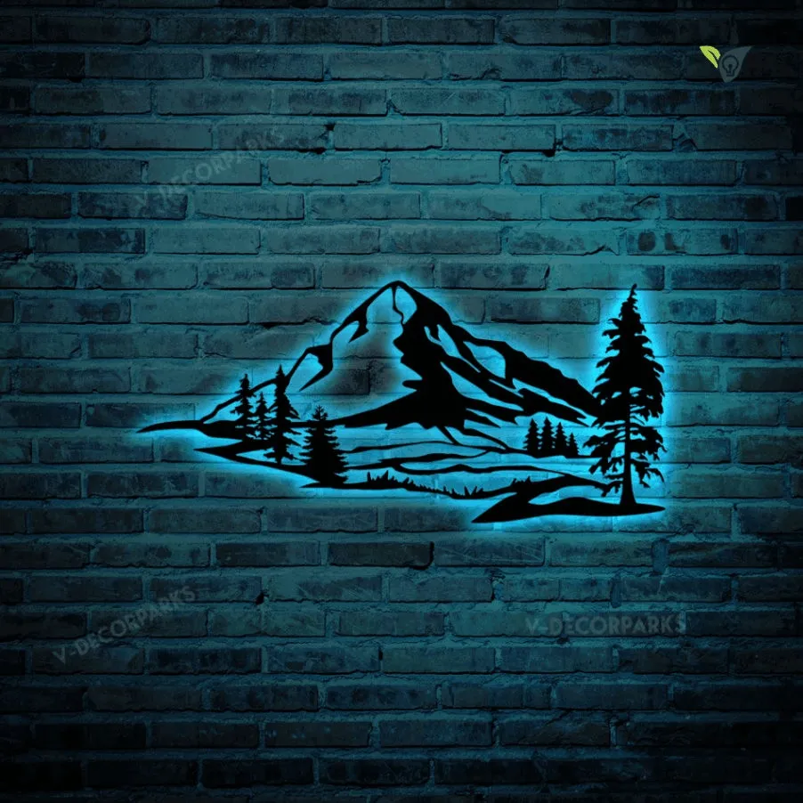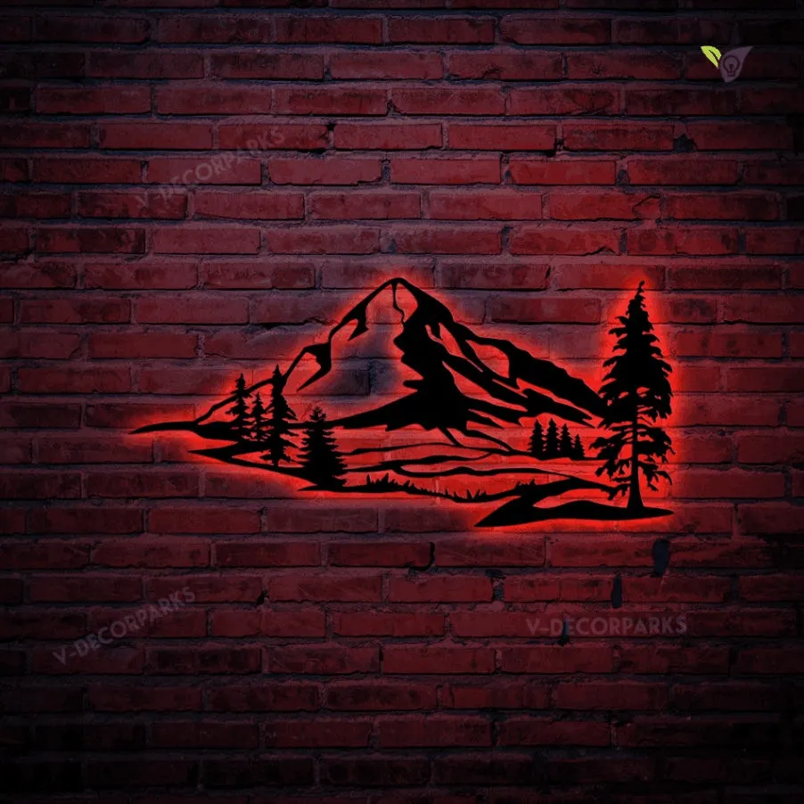 Personalized Mountain Metal Art With Led Lights, Mountain Art, Mountain Range, Metal Outdoor Signs, Outdoor Wall Decor