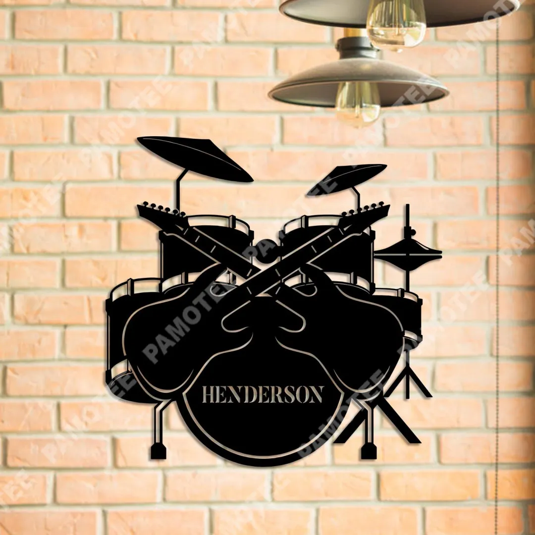 Personalized Name Drum Set Metal Sign, Home Decor For Drummer