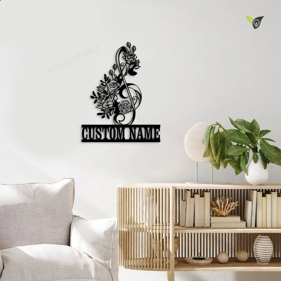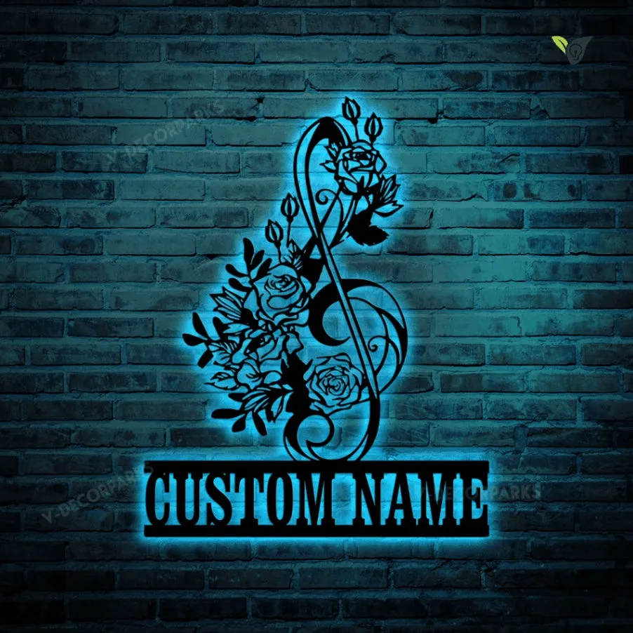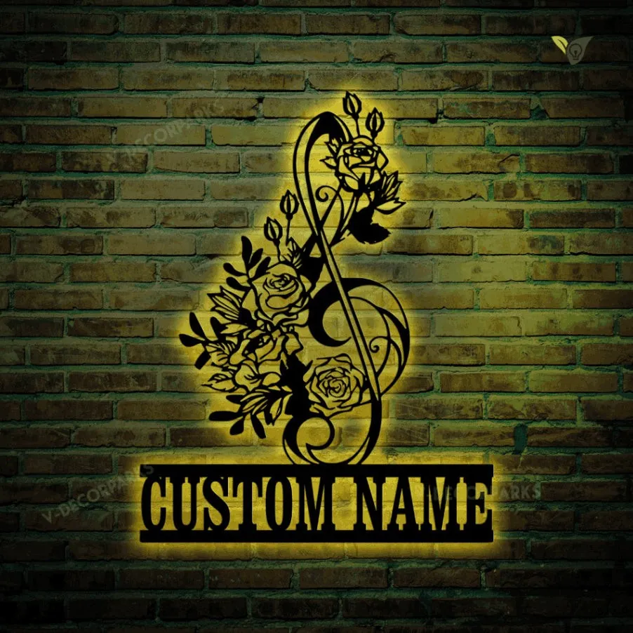 Personalized Name Music Notes Metal Wall Art With Led Lights, Metal Wall Decor, Music Decor, Music Decor, Living Room Decoration