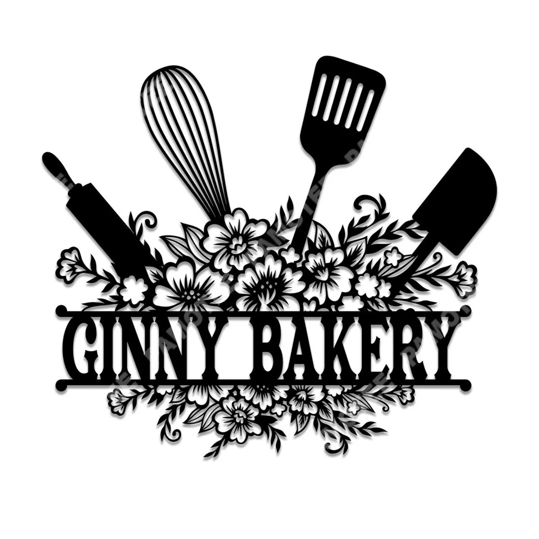 Personalized Name Utensils And Flowers Metal Art, Steel Plaque For Your Kitchen