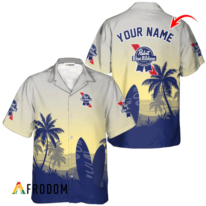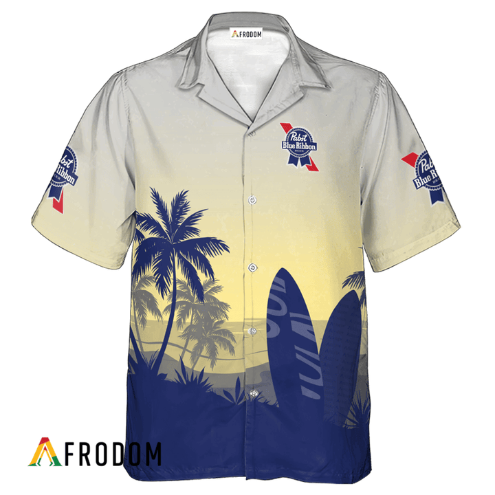 Personalized Pabst Blue Ribbon Hawaiian Shirt For Men – Palm Tree Surfboard – Casual Streetwear Golf Outfit