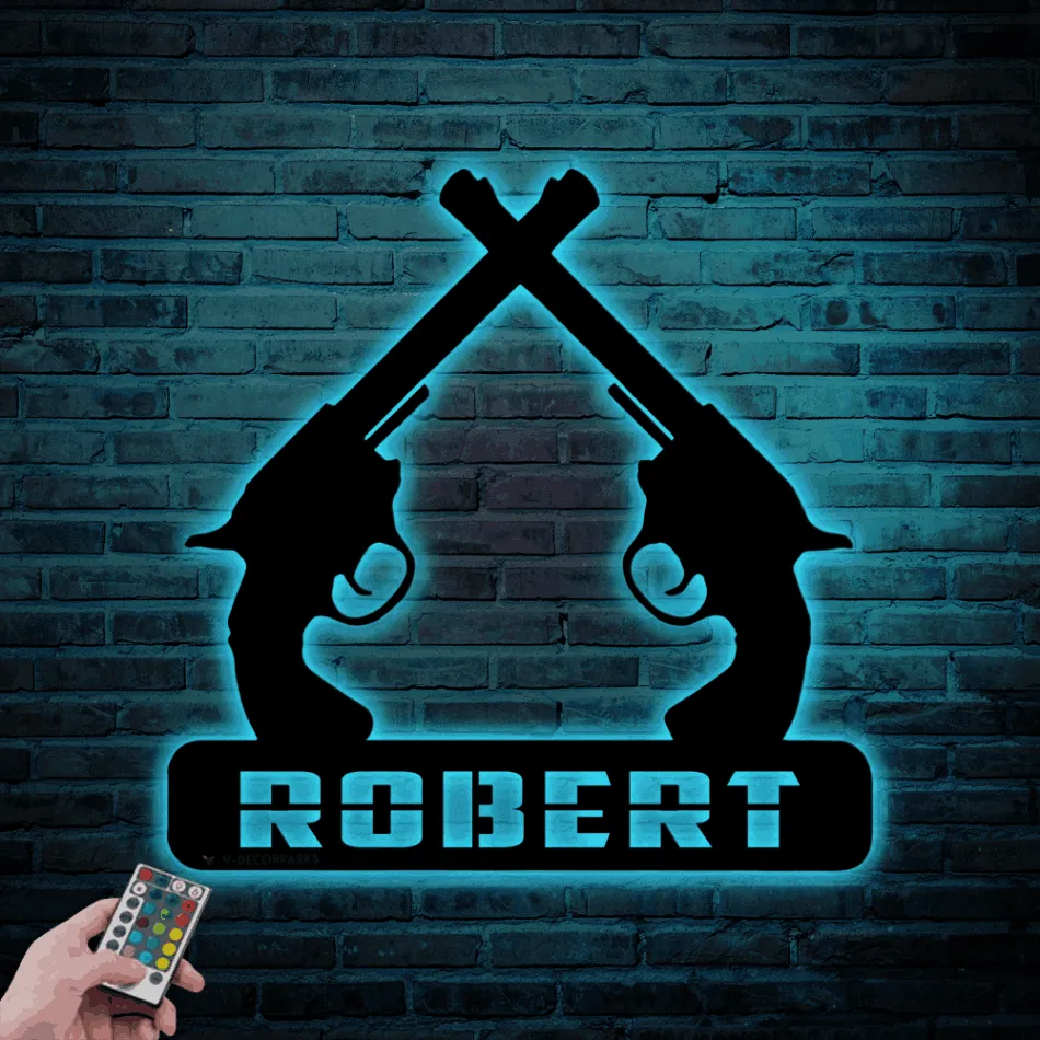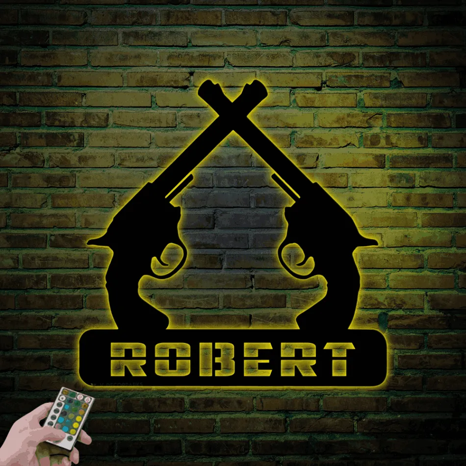 Personalized Six Shooter Cowboy Gun Metal Sign With Led Lights, Custom Gun Room Sign Gun Room Decors