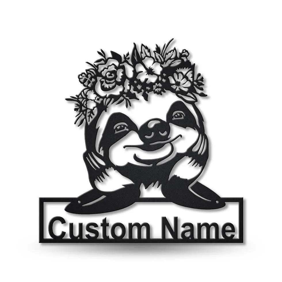 Personalized Sloth With Floral Metal Sign Art, Custom Sloth With Floral Metal Sign, Gifts Funny, Animal Custom