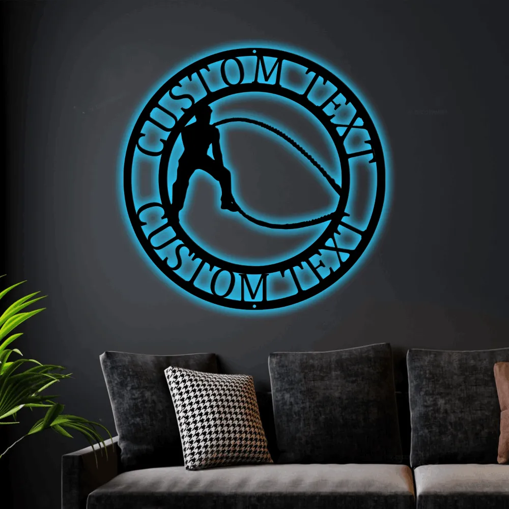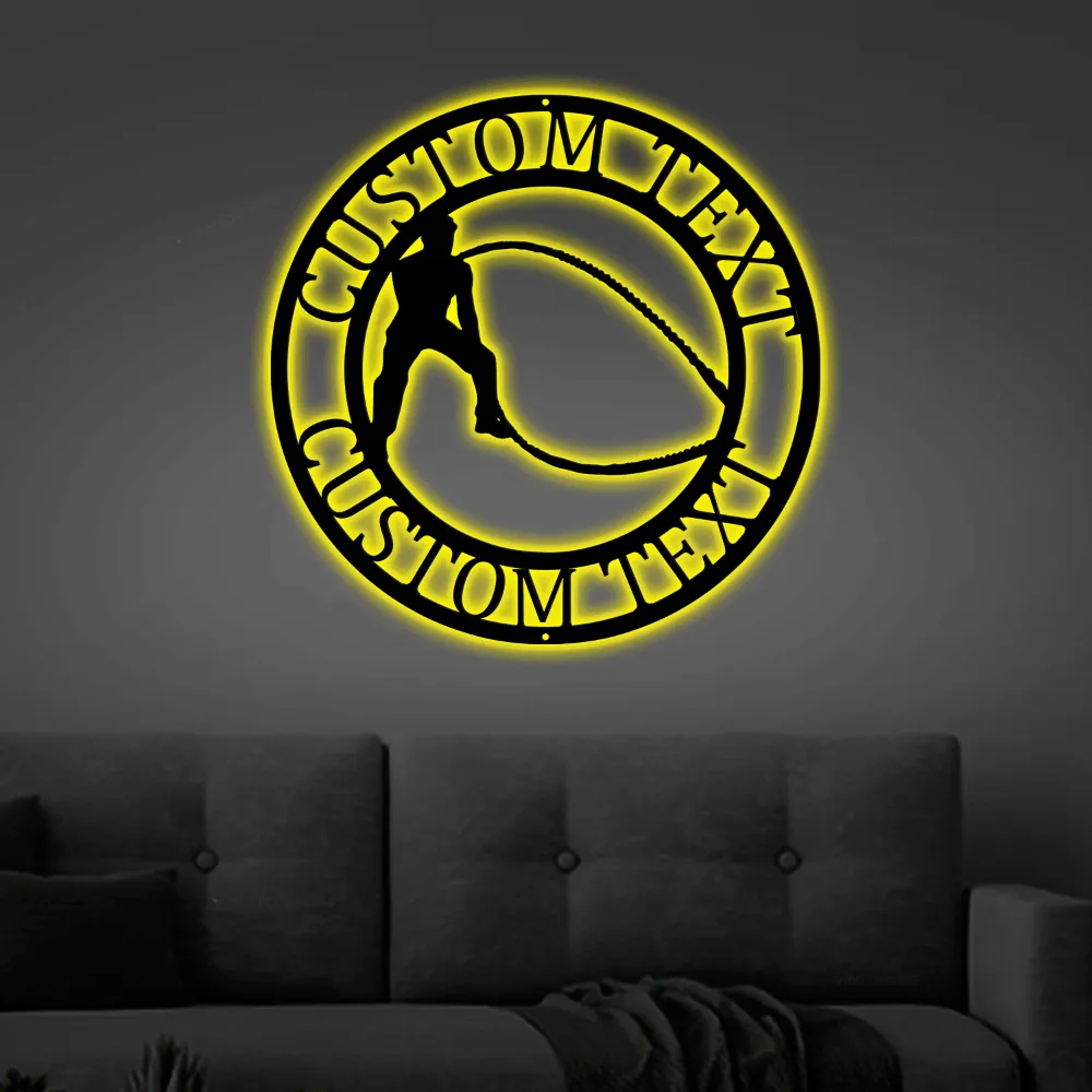 Personalized Workout Monogram Steel Sign With Led Lights, Customize Crossfit Home Gym Monogram Steel Sign, Workout Home Gym Wall Art Decor