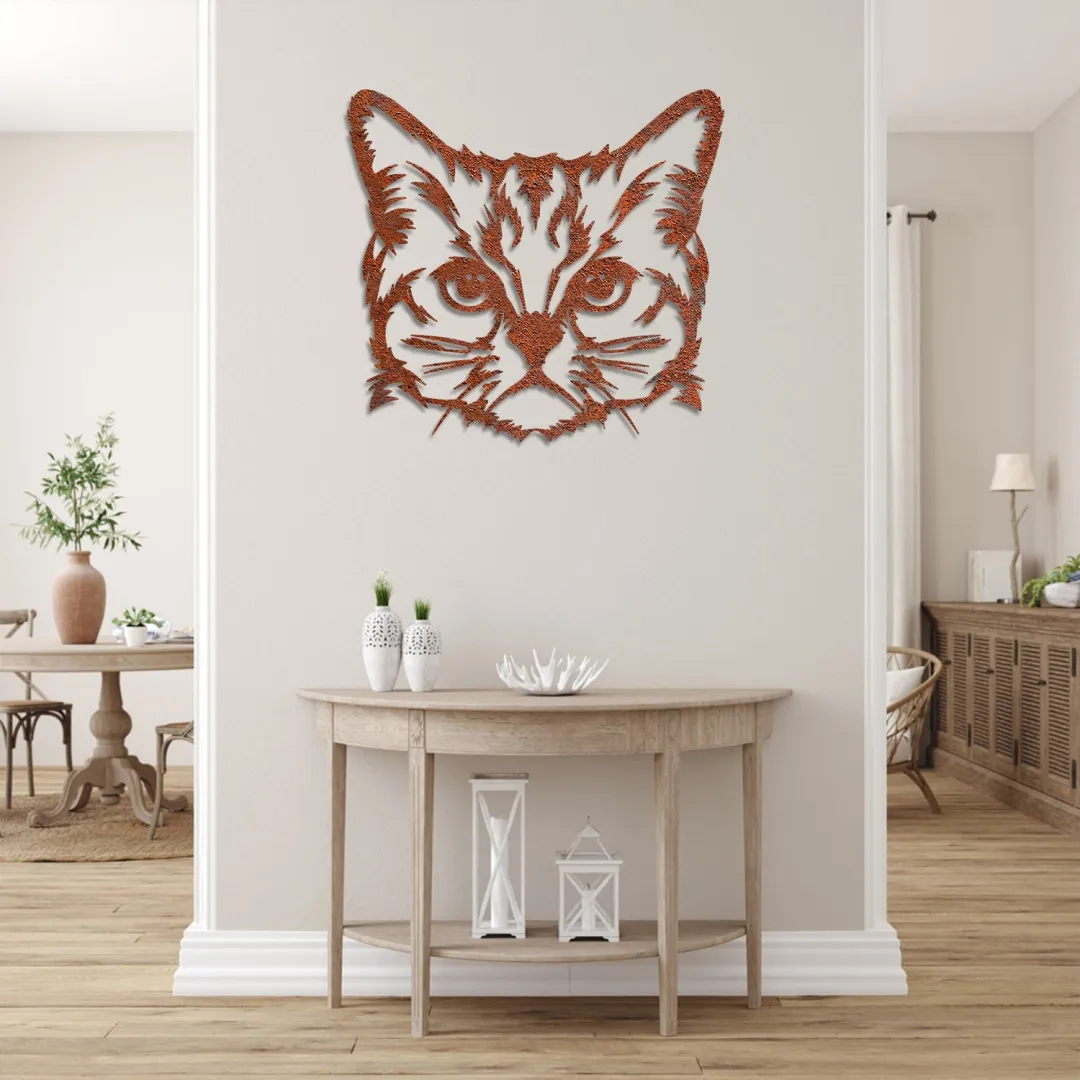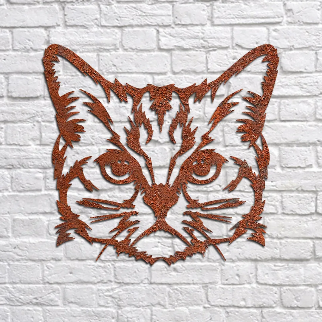 Rustic Cat Face Metal Art, Cat, Kitten Vintage Wall Hanging