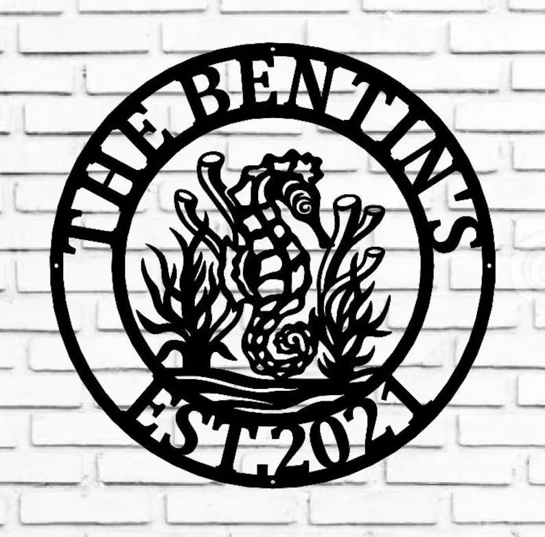 Sea Horse Ocean Beach Metal Art Steel Wall Decor, Seahorse Marine Life Sign, Nautical Wall Art, Ocean Sea Animal Decor, Custom Metal Sign